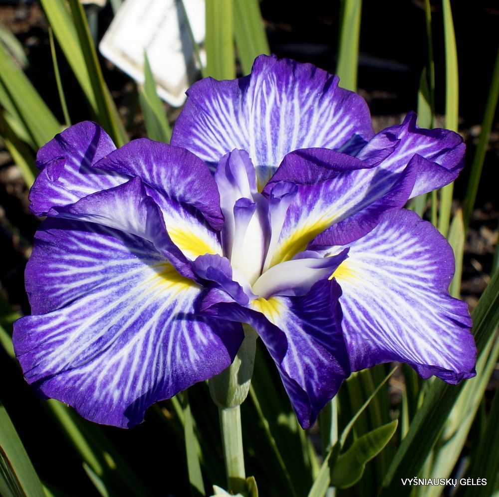 Žiedai tamsiai violetiniai su baltomis gyslomis. A – 75 cm