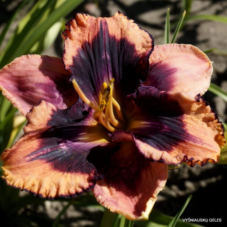 Žiedai vidutinio dydžio (15 cm skersmens) rožiniai su juodai purpurine akimi ir apvadu. A – 70 cm