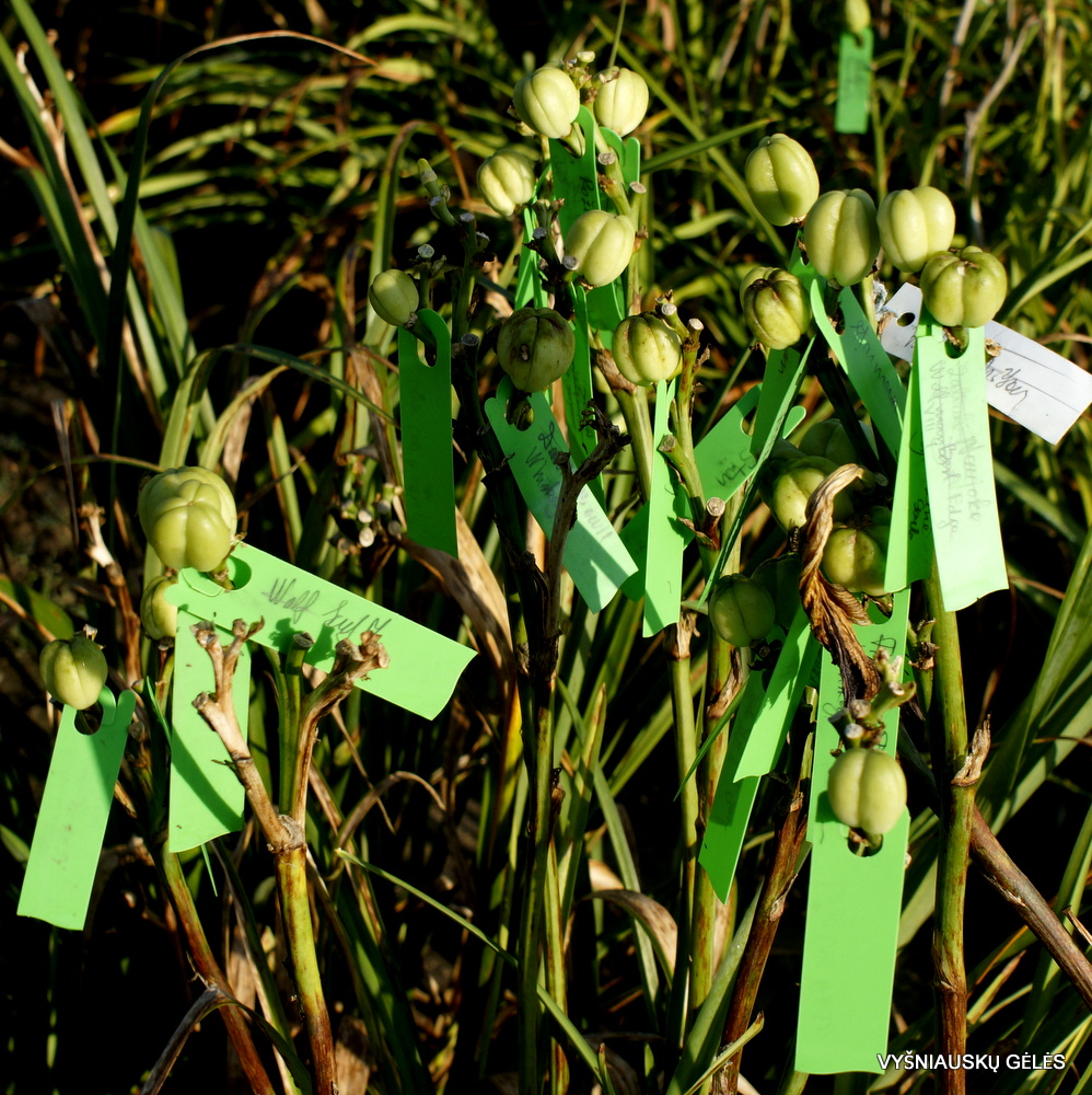 Žiedynas 5 kartus šakotas su net 34 pumpurais. Leidžia pakartotinius žiedynus, labai gerai mezga sėklas. A – 100 cm