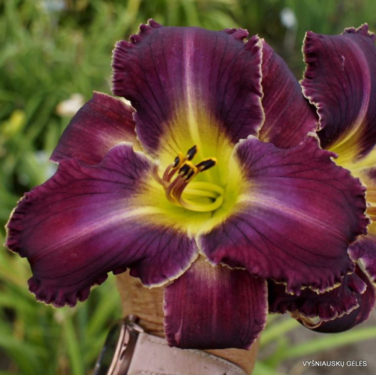 Dar viena iš ypatingai gausiai žydinčių veislių. Žiedai 16 cm skersmens, tamsiai aksomiškai purpuriniai, stipriai blizgantys saulėje su mėlyna akimi ir žalsvai geltonu centru. Vainiklapių pakraščiai su baltu apvadu.