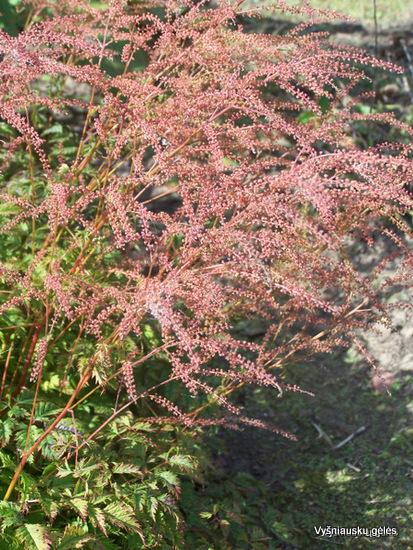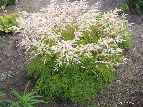 Ilgaamžis augalas smulkiai karpytais lapais, raudonais stiebais ir baltais žiedynais. Iki žydėjimo lapai turi rausvą atspalvį. Žydi gausiai birželio – liepos mėn. Auga dailiais, kompaktiškais kerais. Nužydėjusios šluotelės ilgai išlieka gražios, turinčios švelniai rožinę spalvą. Visi arunkai geriausiai auga saulėje ar pusiau pavėsyje, pakankamai derlingoje ir drėgnoje dirvoje. A – 40-50 cm