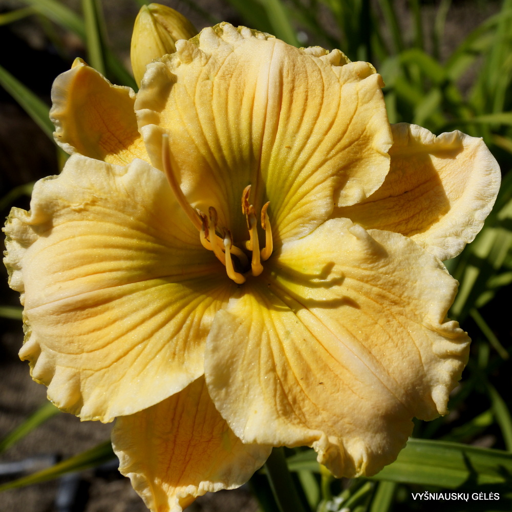 Žiedai nemaži (17 cm skersmens) persikų spalvos su labai žaliu centru. A – 80 cm