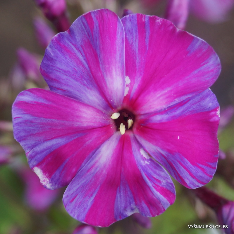 Nauja olandų selekcijos, įdomi flioksų veislė. Žiedai nemaži, purpuriniai su mėlynomis juostelėmis. A – 100 – 105 cm