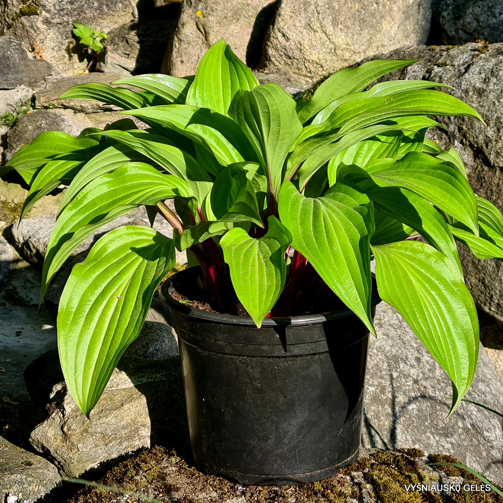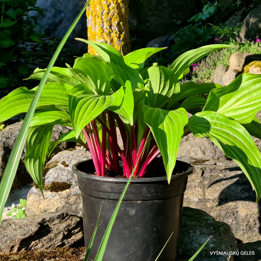 Labai ryškiai raudoni stiebai, blizgūs skaisčiai žali lapai. A – apie 30 – 40 cm