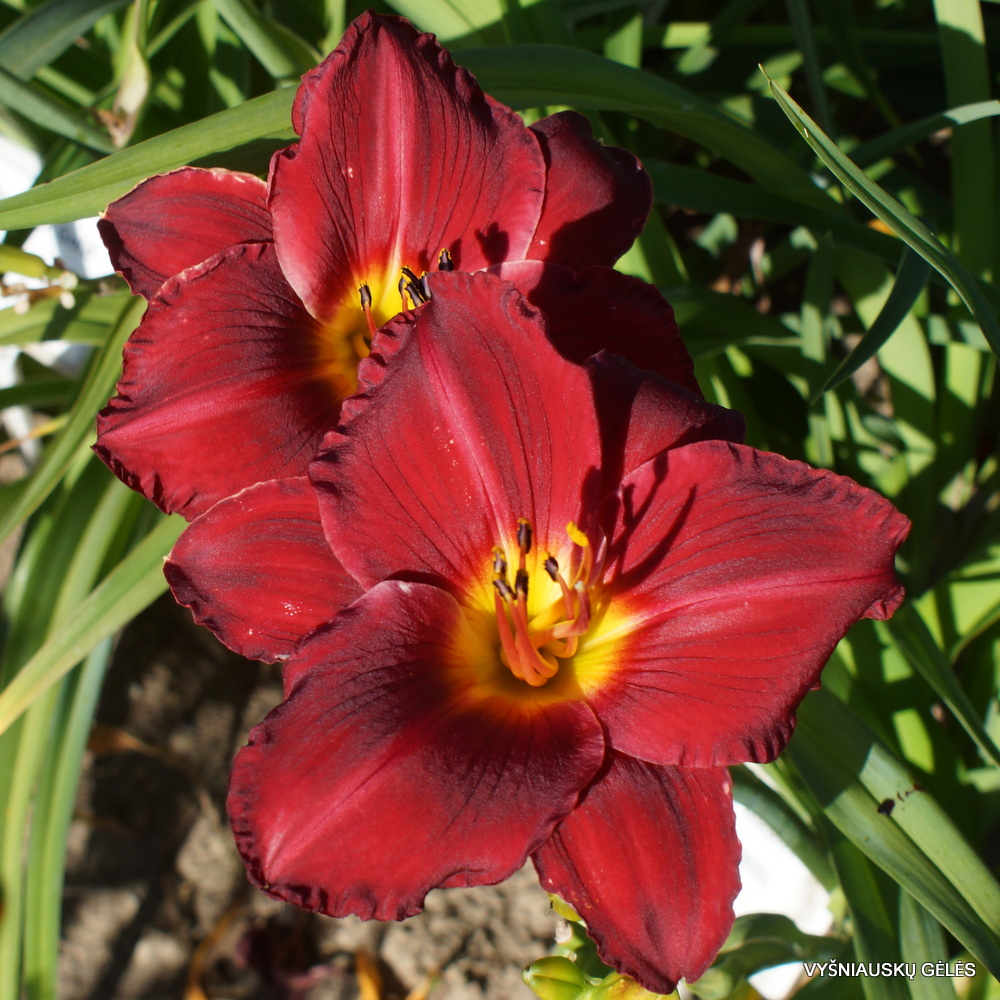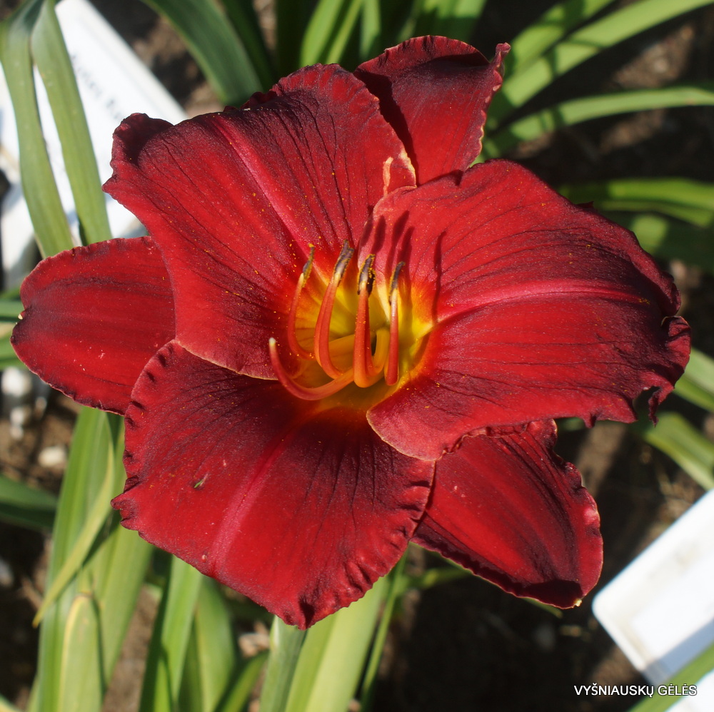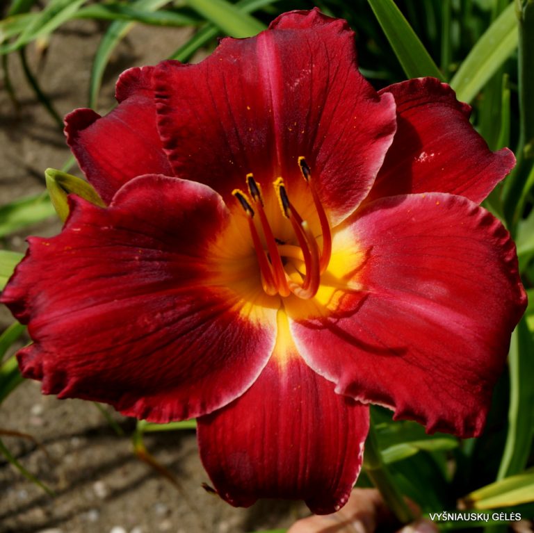 Žiedai vidutinio dydžio (12 cm skersmens) ryškiai raudoni. A – 60 cm