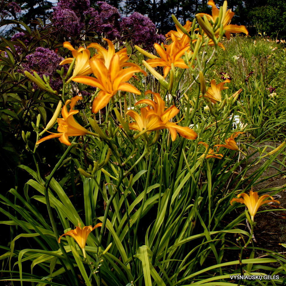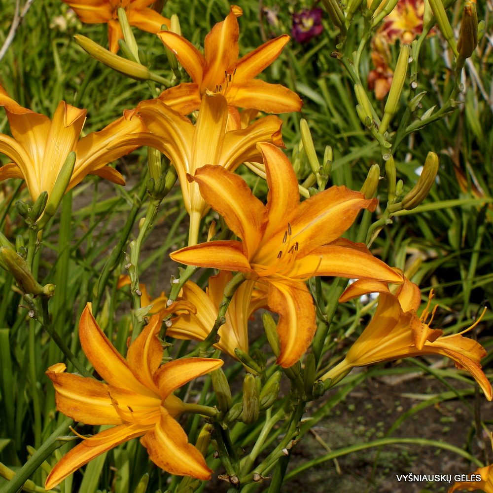 Žiedai vidutinio dydžio (16 cm skersmens) oranžiniai. Aukšta vėlyva viendienė. A – 140 cm