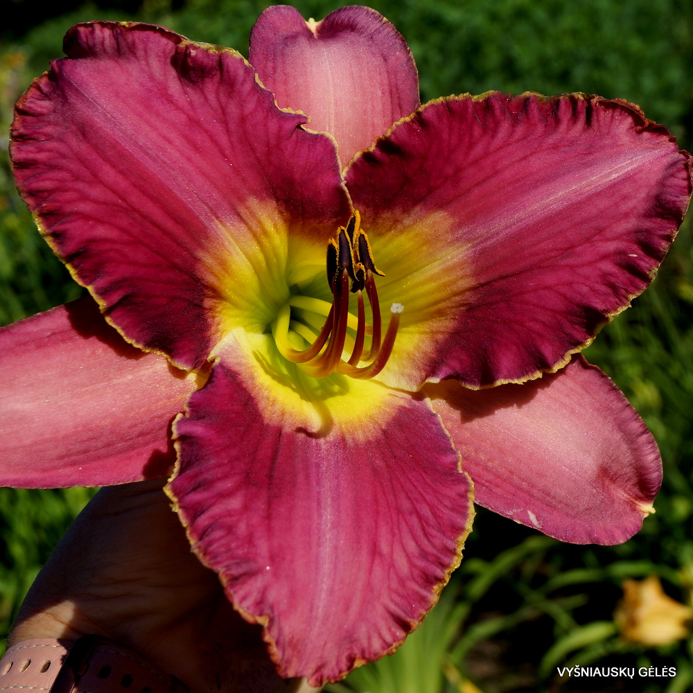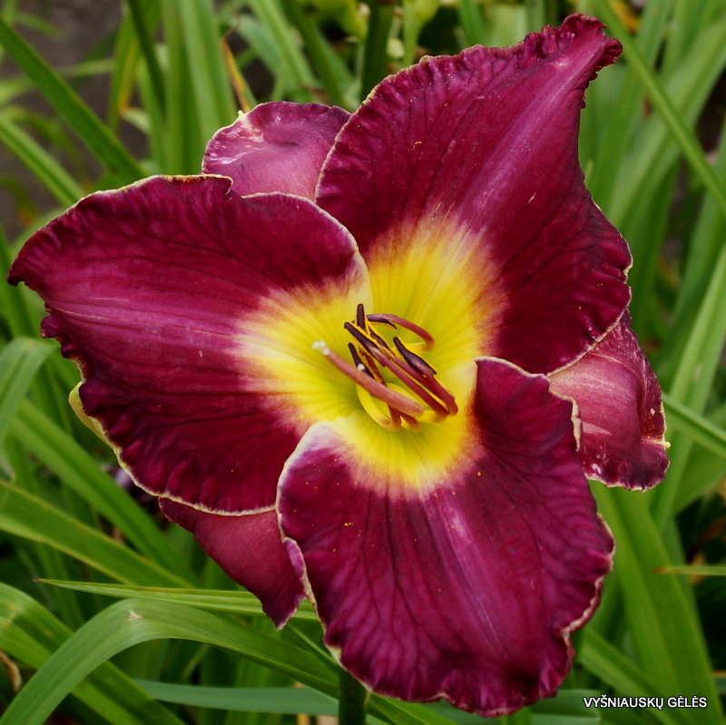 Žiedai nemaži (15 cm skersmens), purpuriniai su siauru baltu apvadu ir truputį banguotu pakraščiu. Labai gausiai žydinti. A – 100 cm