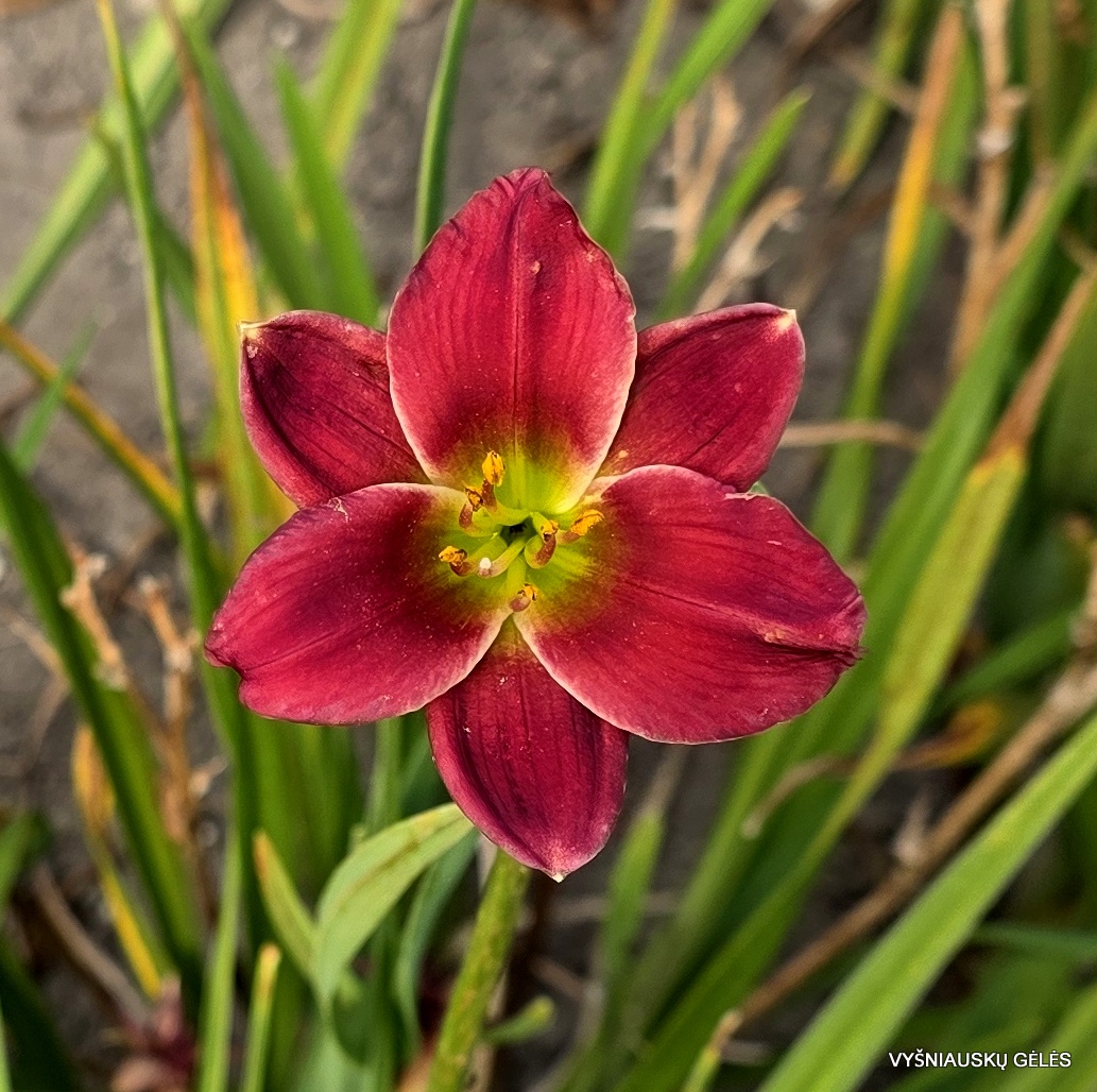 Žiedai labai maži (6 cm skersmens) raudoni su žaliu centru. A – 55 cm