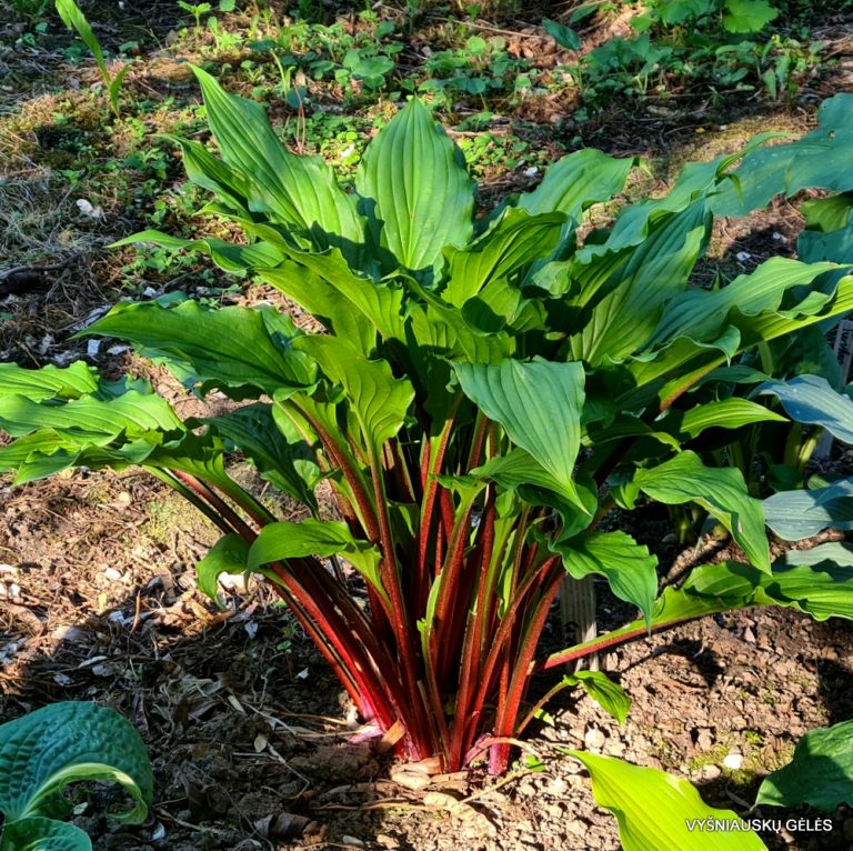 Šviesiai žali lapai, raudoni ir ilgi lapkočiai. Gali augti ir saulėje. Aukštis – 40 cm