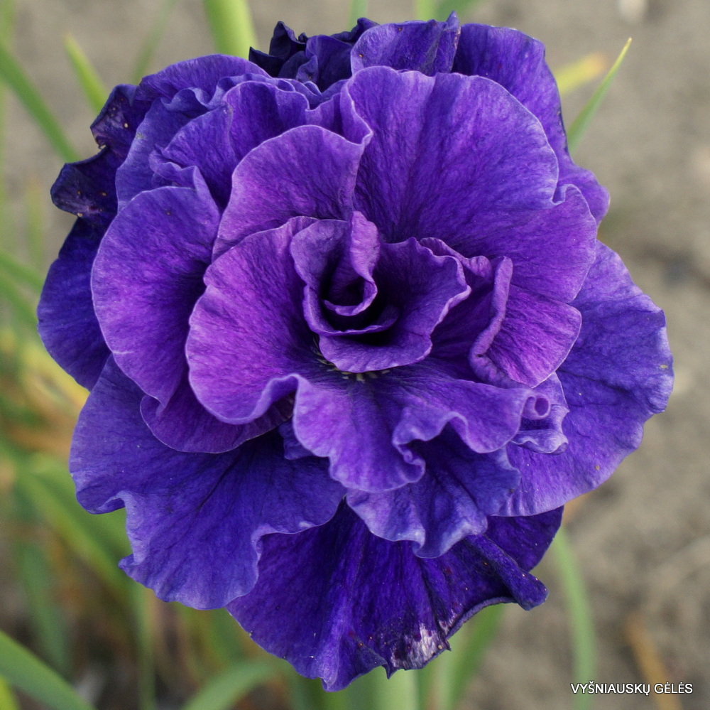 Žiedai stambūs pilnaviduriai mėlynai violetiniai. Vėlyva veislė. Pražysta birželio viduryje. A – 100 cm
