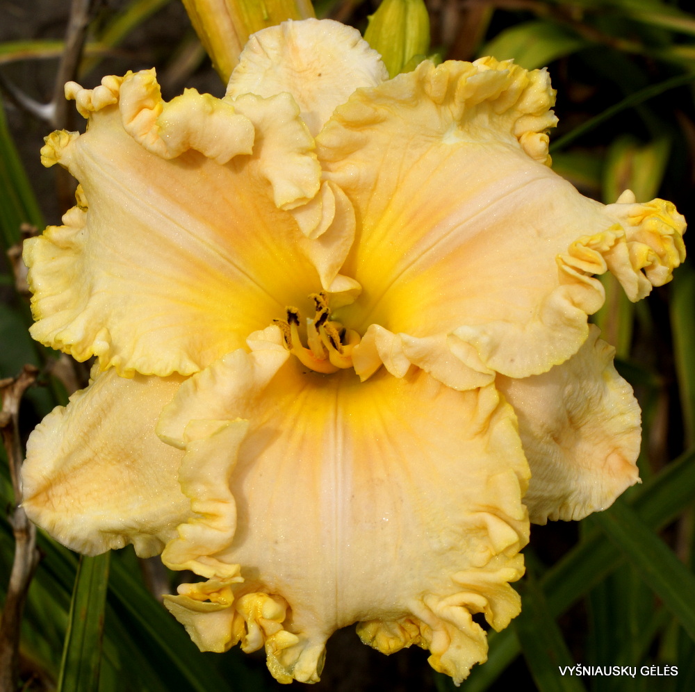 Žiedai vidutinio dydžio (14,5 cm skersmens) kremiškai abrikosiniai. A – 75 cm