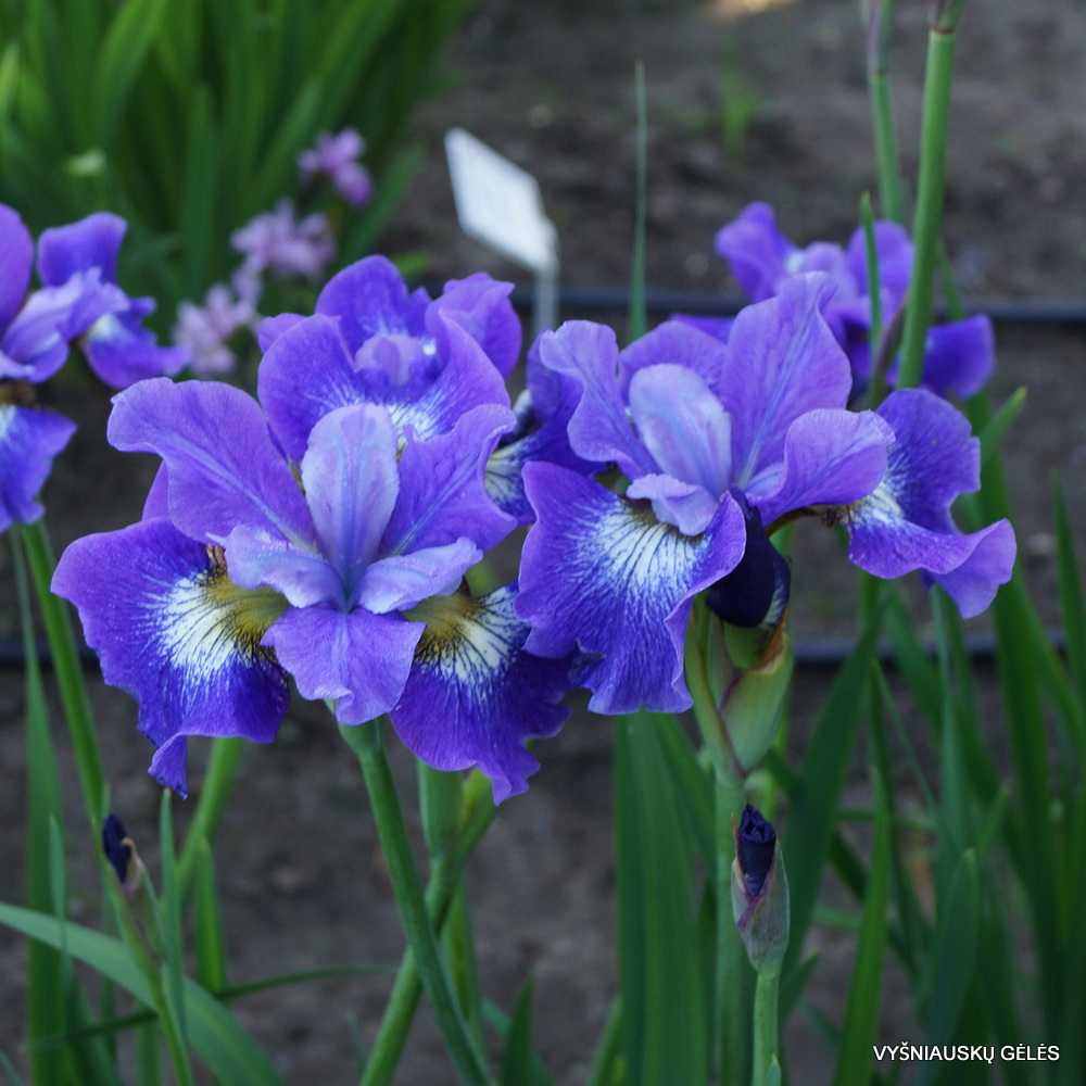 Žiedai ryškiai mėlyni su gelsvai balta dėme. Pradeda žydėti birželio pirmoje pusėje. A – 80 cm