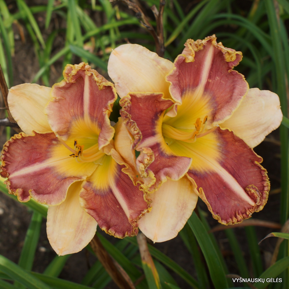 Žiedai vidutinio dydžio (15 cm) dvispalviai, korališkai rožiniai ir kreminiai. Labai ilgai žydi. A – 75 cm