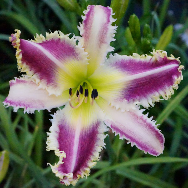 Žiedai vidutinio dydžio (15 cm skersmens) purpuriniai su su baltu labai spygliuotu apvadu. A – 95 cm