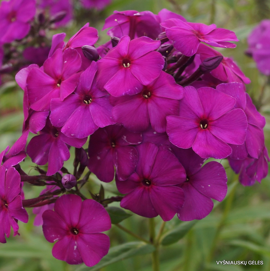 Žiedai vidutinio dydžio, tamsiai violetiškai raudoni su maža raudona akute. Pražysta truputį anksčiau už kitas veisles. A – 100 – 105 cm