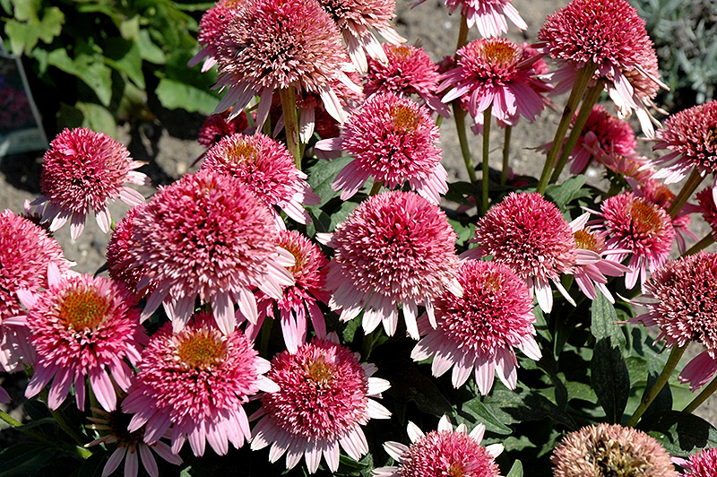 Žemaūgė ežiuolė pilnaviduriais šviesiai rožiniais žiedais. A – 30-35 vm