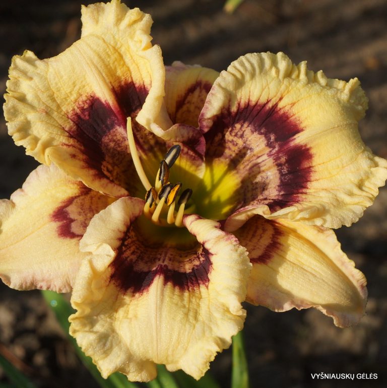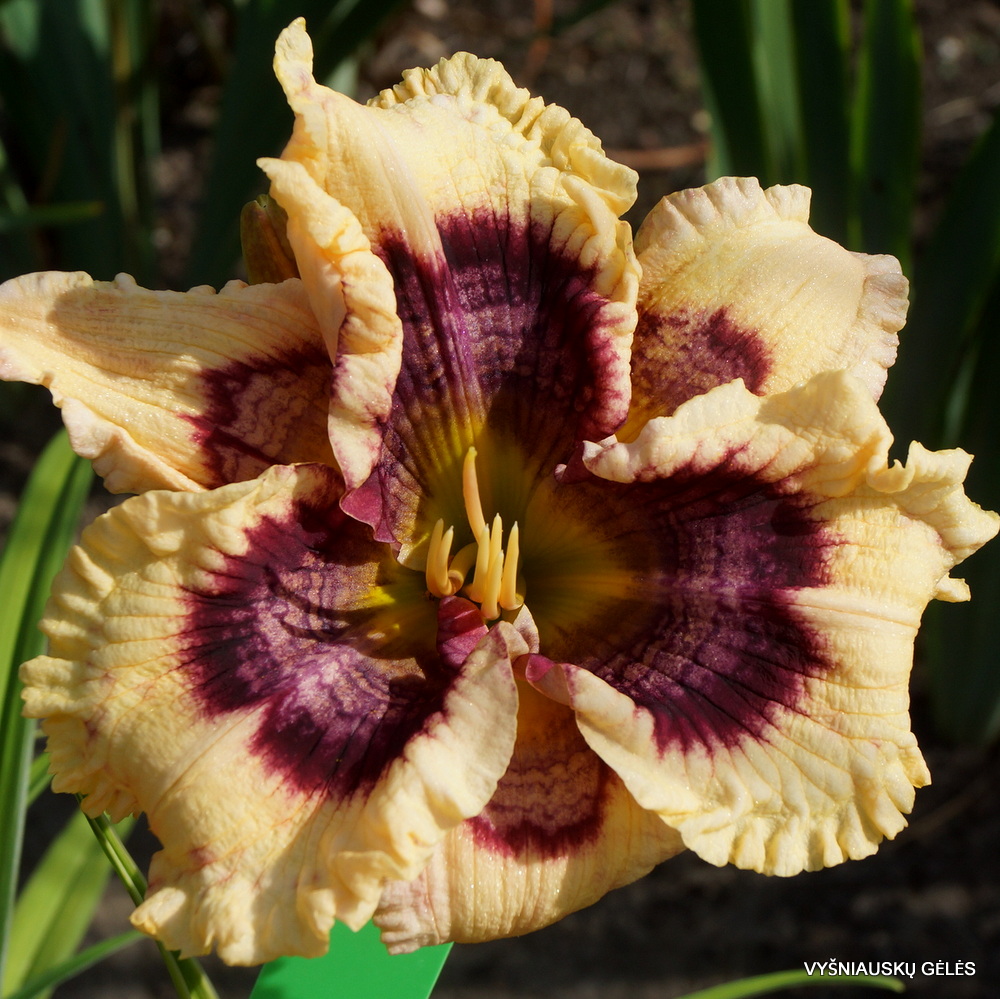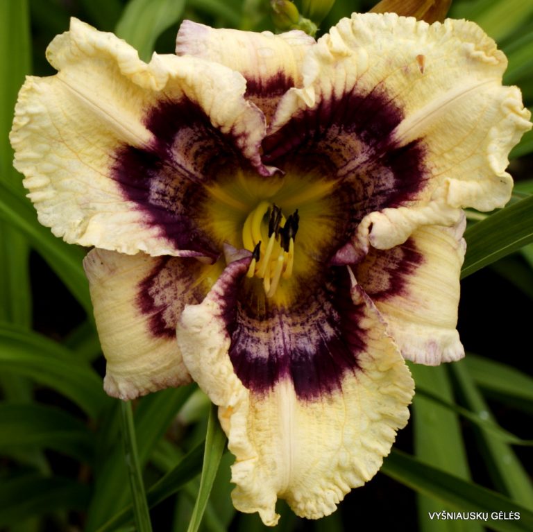 Žiedai nemaži (16 cm skersmens) kreminiai su daugiaspalve dėme. A – 70 cm