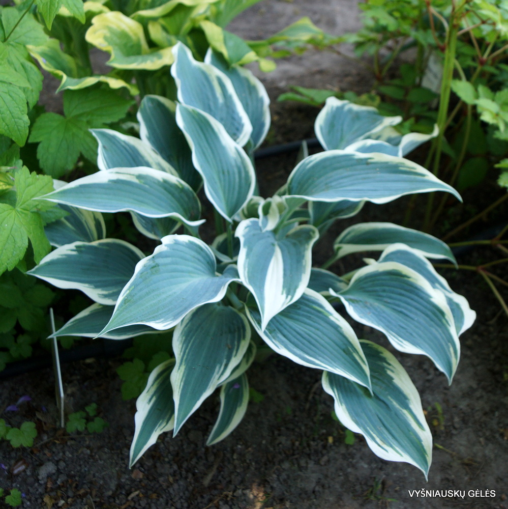 lapai standūs, intensyviai mėlyni su baltais pakraščiais. Labai graži. Vidutinė. A – 30 – 40 cm