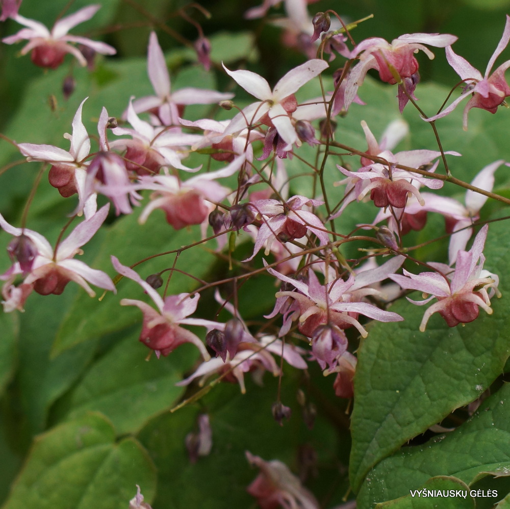 Žiedai švelniai rožiniai su raudonu centru. Žydi balandžio – gegužės mėn. A – 30 cm