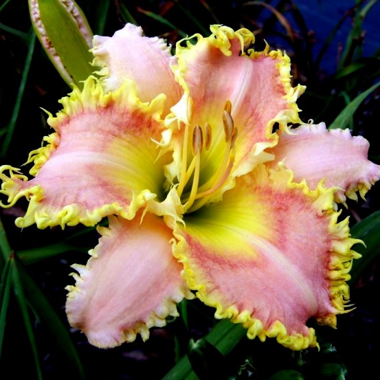 Žiedai vidutinio dydžio (14 cm) rožiniai su tamsiau rožine dėme ir gelsvai žalsvu garbanotu ir labai spygliuotu apvadu. Vėlyva veislė ir žydi iki šalčių. A – 65 cm