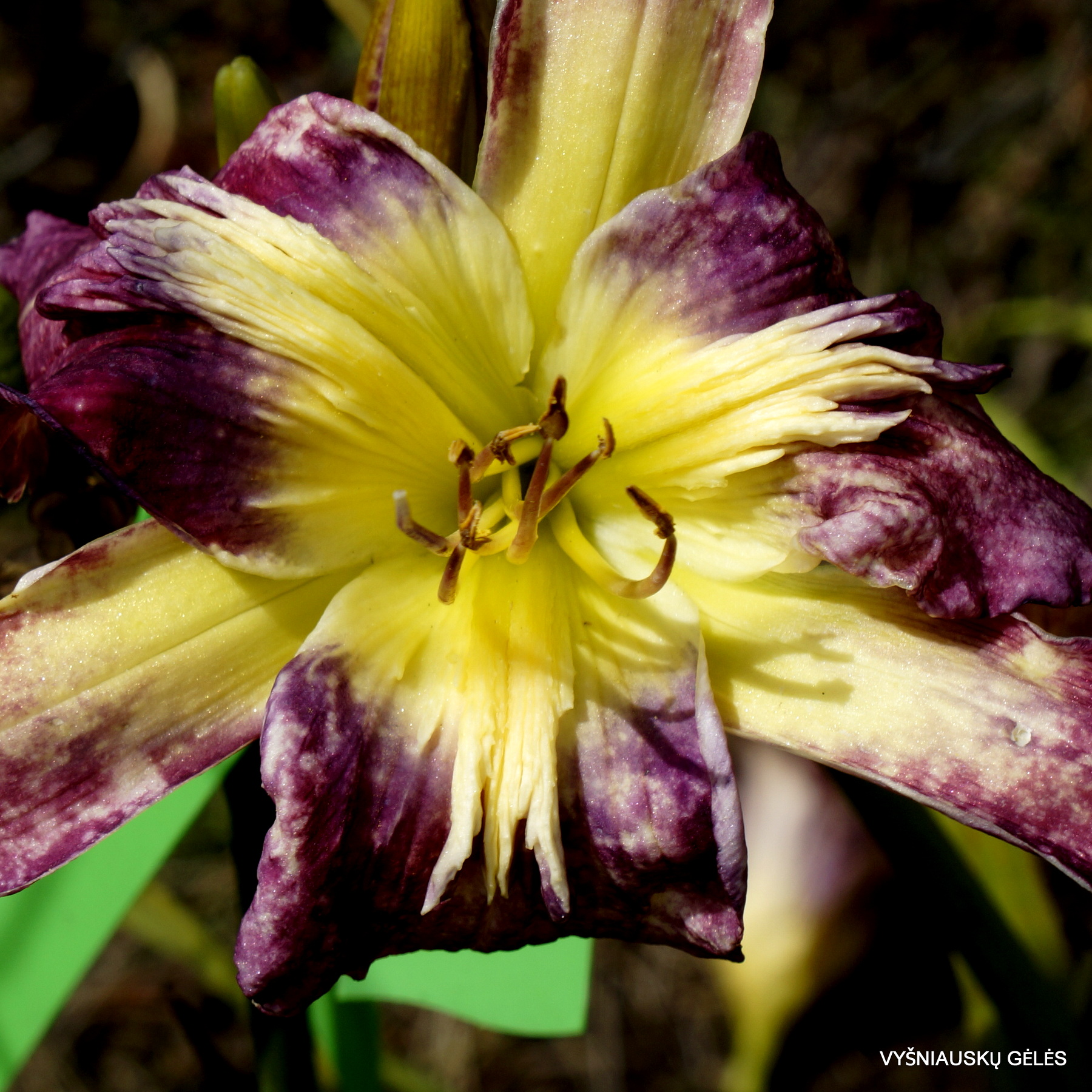 Žiedai vidutinio dydžio (16 cm skersmens) purpuriniai su žalsvai gelsvomis barzdomis. A – 70 cm