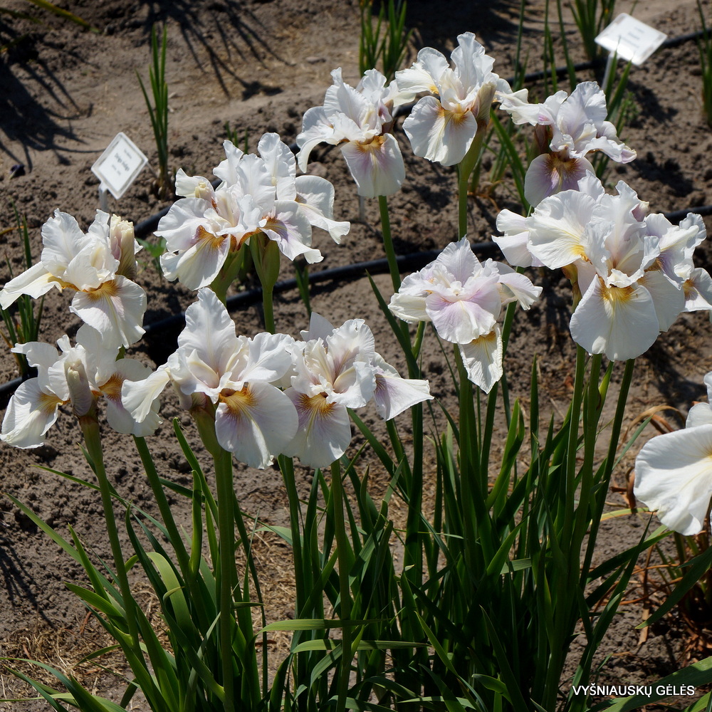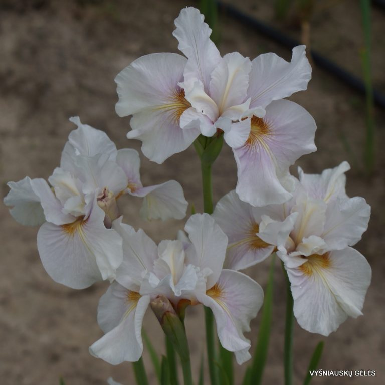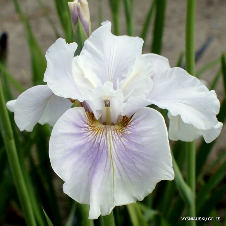 žiedi beveik balti su didele levandiškai rožine dėme. Pradeda žydėti pirmoje birželio pusėje. A – 80 cm
