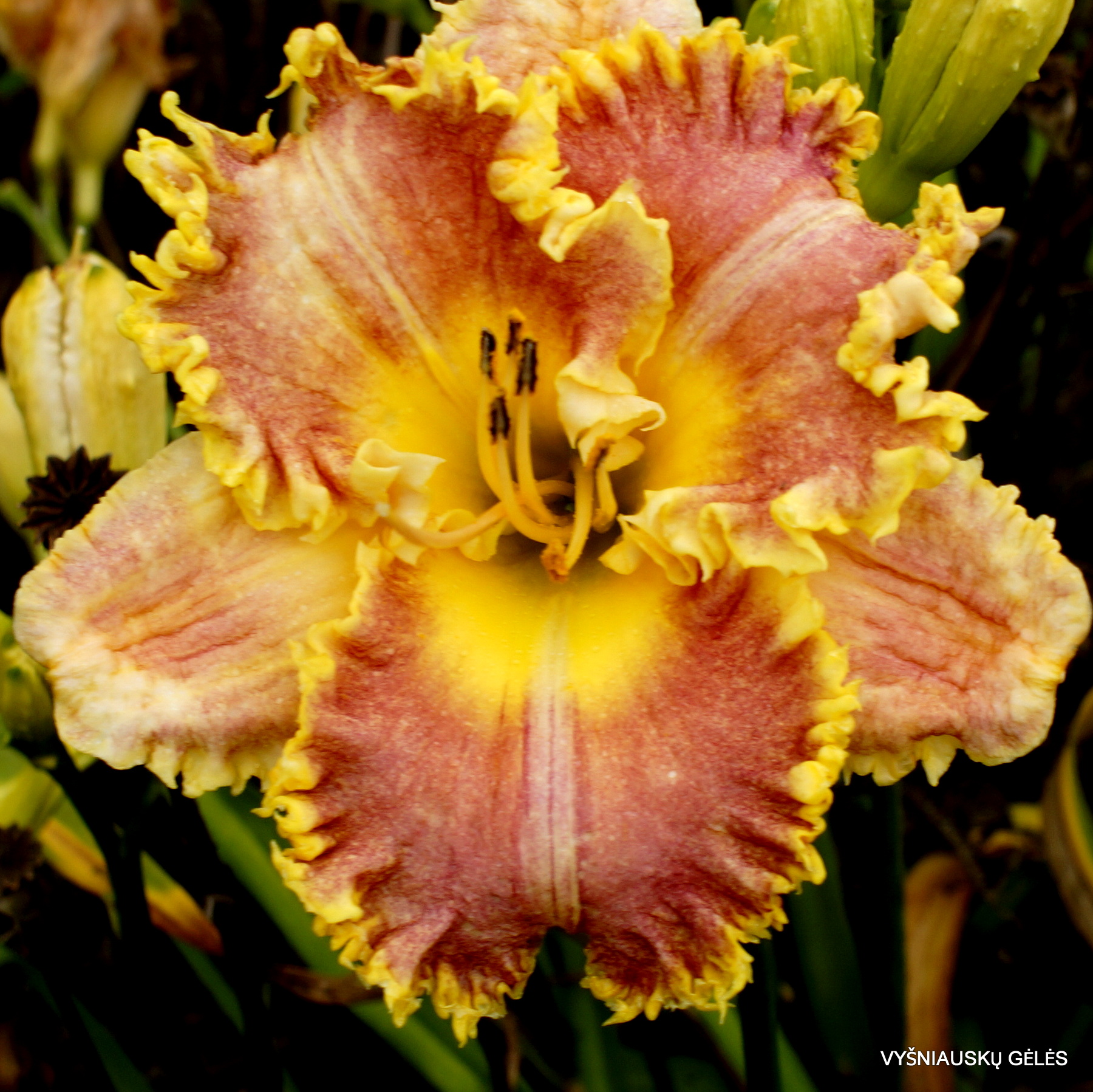 Žiedai vidutinio dydžio (15 cm skersmens), rožiniai su stipriai spygliuotu ir garbanotu apvadu. A – 90 cm