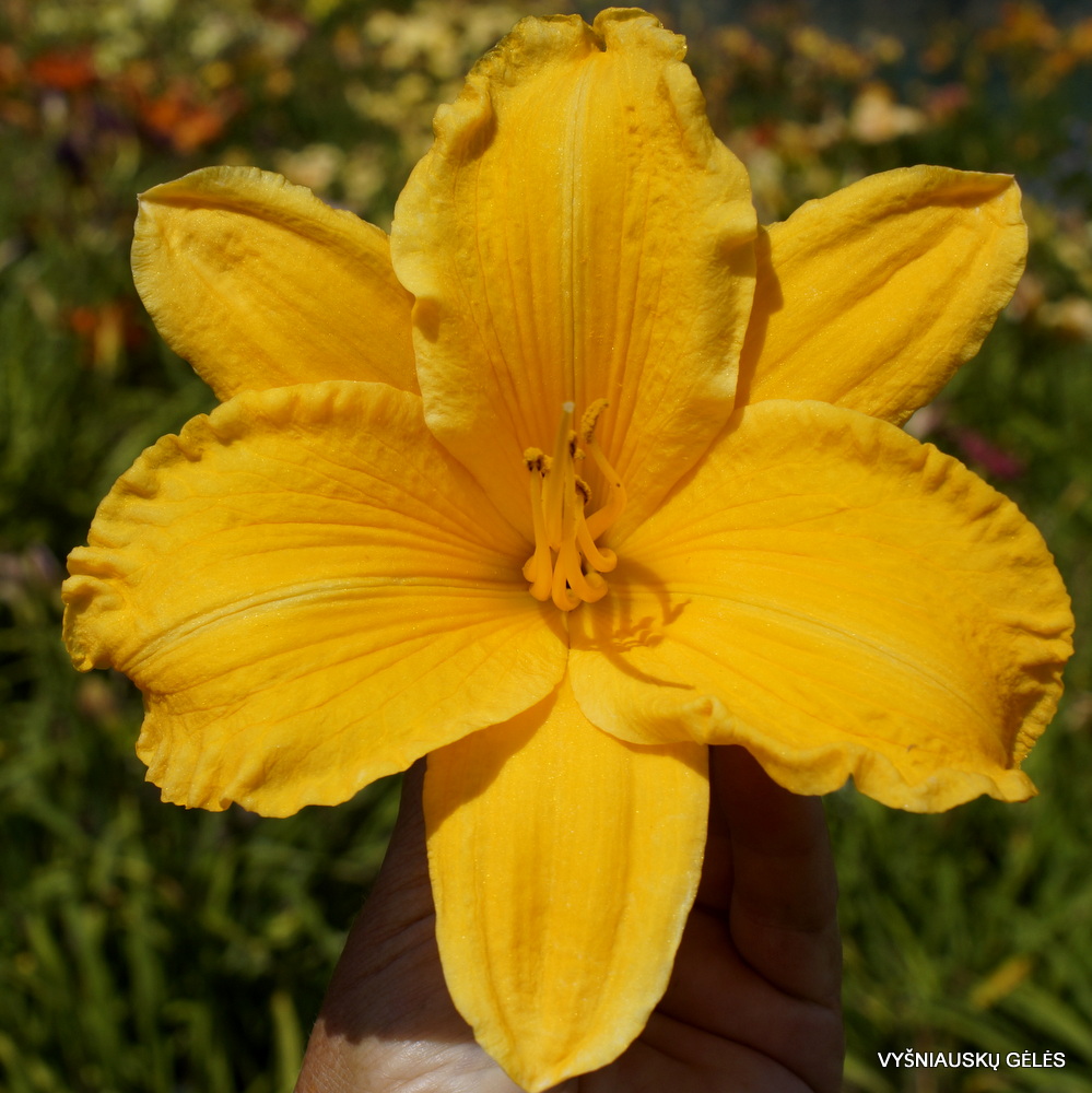 Žiedai vidutinio dydžio (16 cm skersmens) geltoni. A – 50 cm