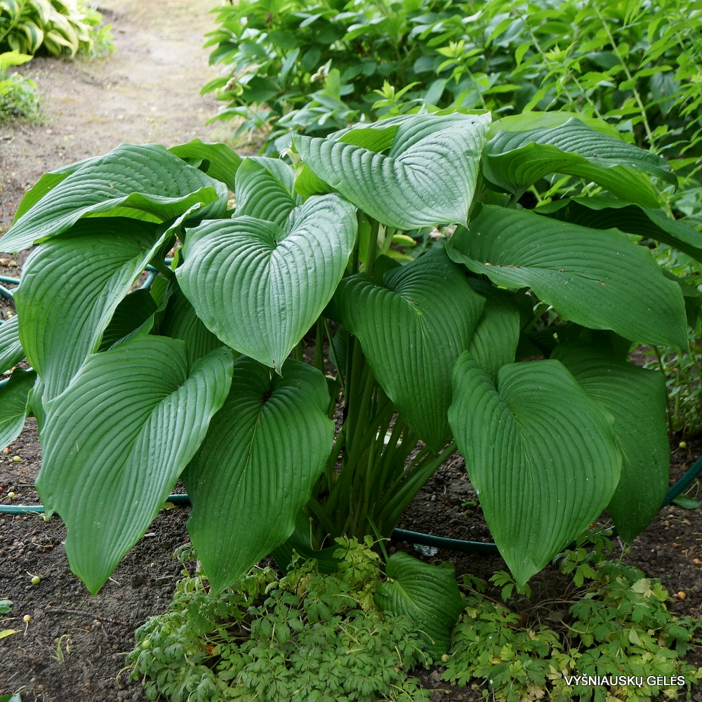 Labai stambi ir įspūdinga melsvė. Lapai didžiuliai, tamsiai žali su ryškiomis gyslomis. A – iki 100 cm