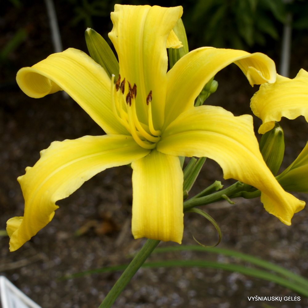 Žiedai dideli (23 cm skersmens) citriniškai geltoni su žaliu centru. A – 105 cm