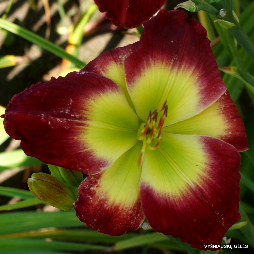 Žiedai vidutinio dydžio (15 cm skersmens) raudoni su dideliu žaliu centru. A – 70 cm
