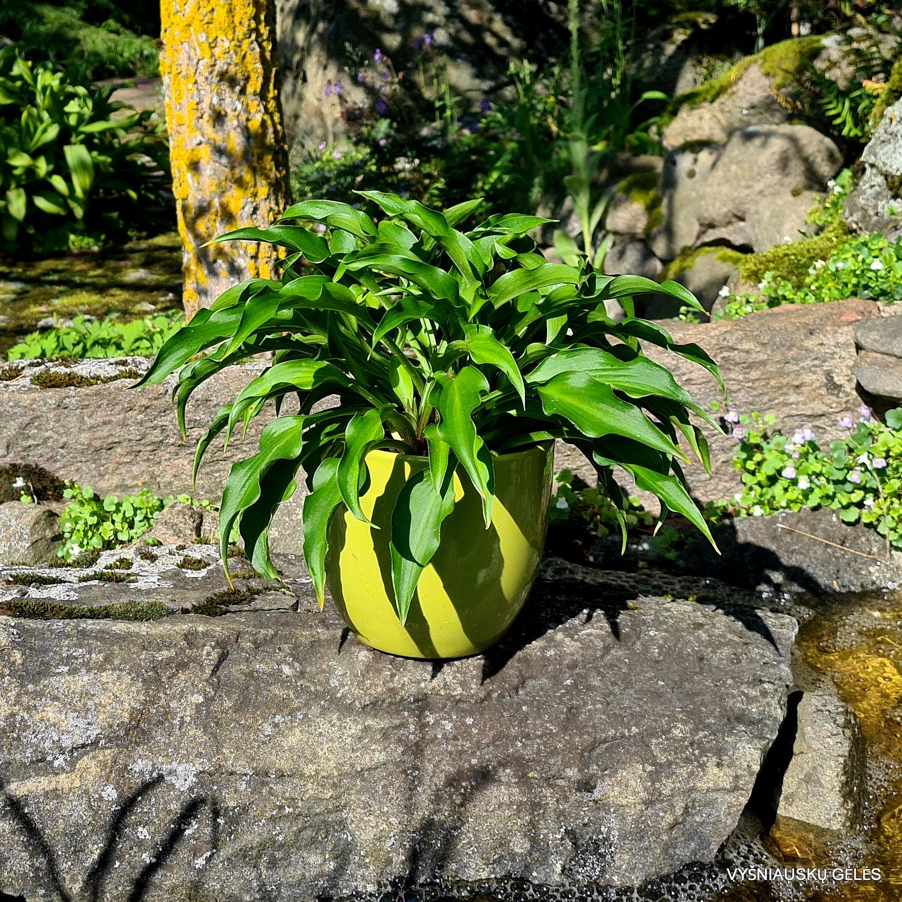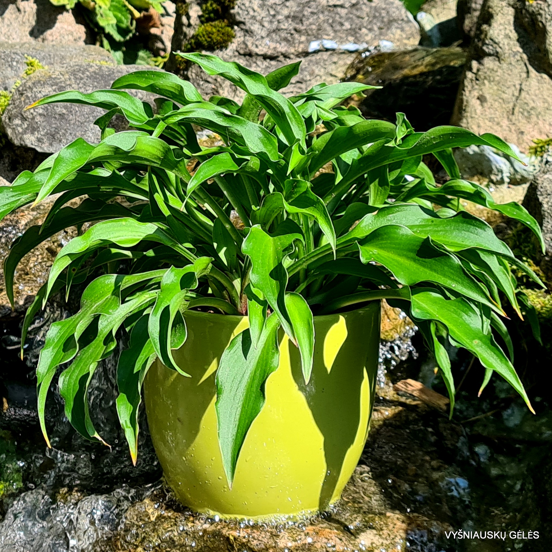 Lapai siauri garbanoti tamsiai žali. galima auginti ir saulėje.A – 15-20 cm