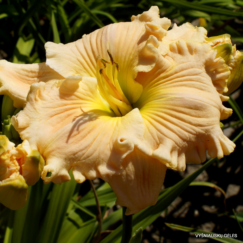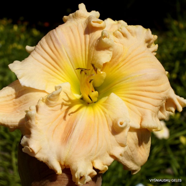 Žiedai nemaži (17 cm skersmens) kremiškai rožiniai. A – 80 cm