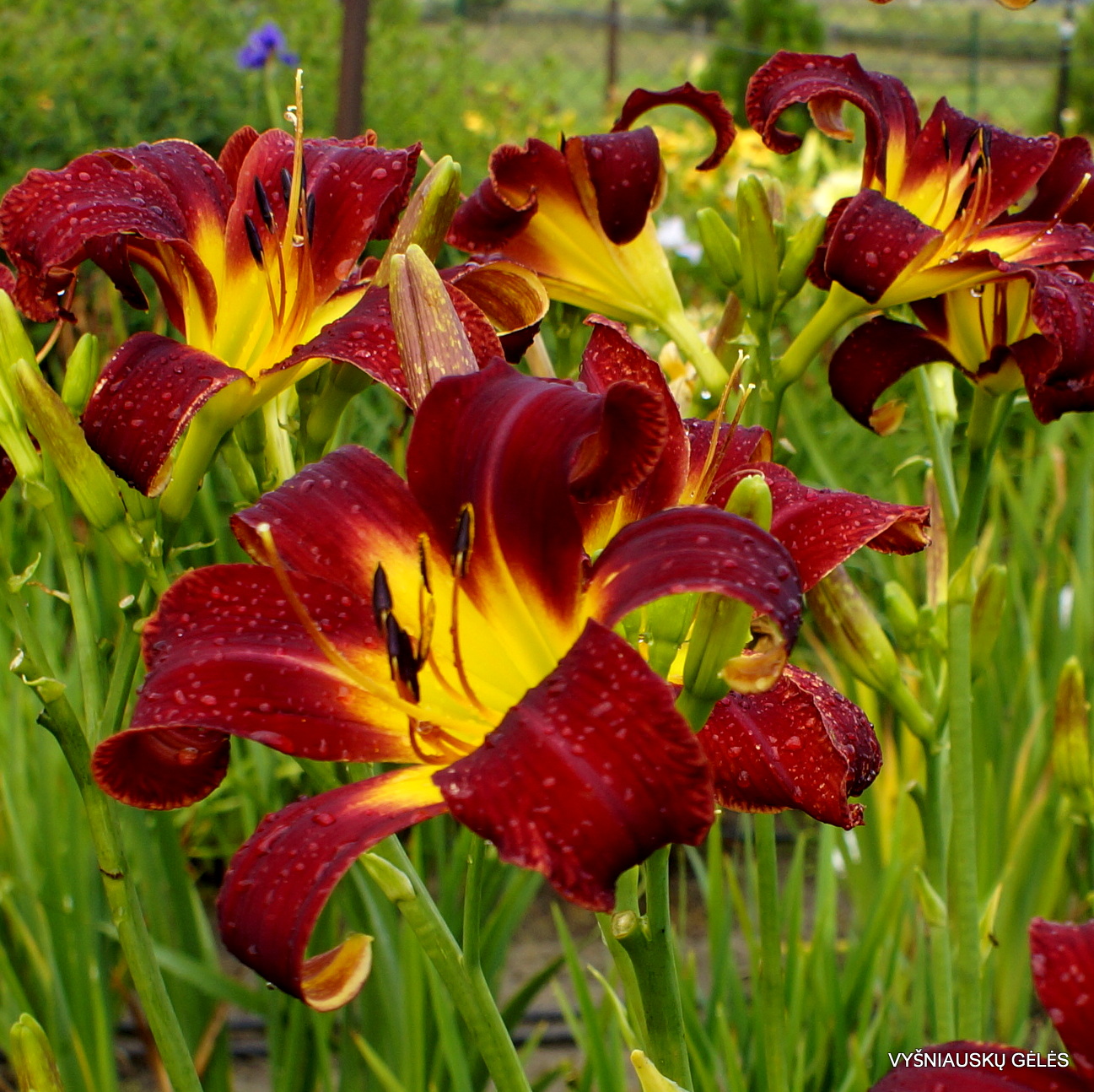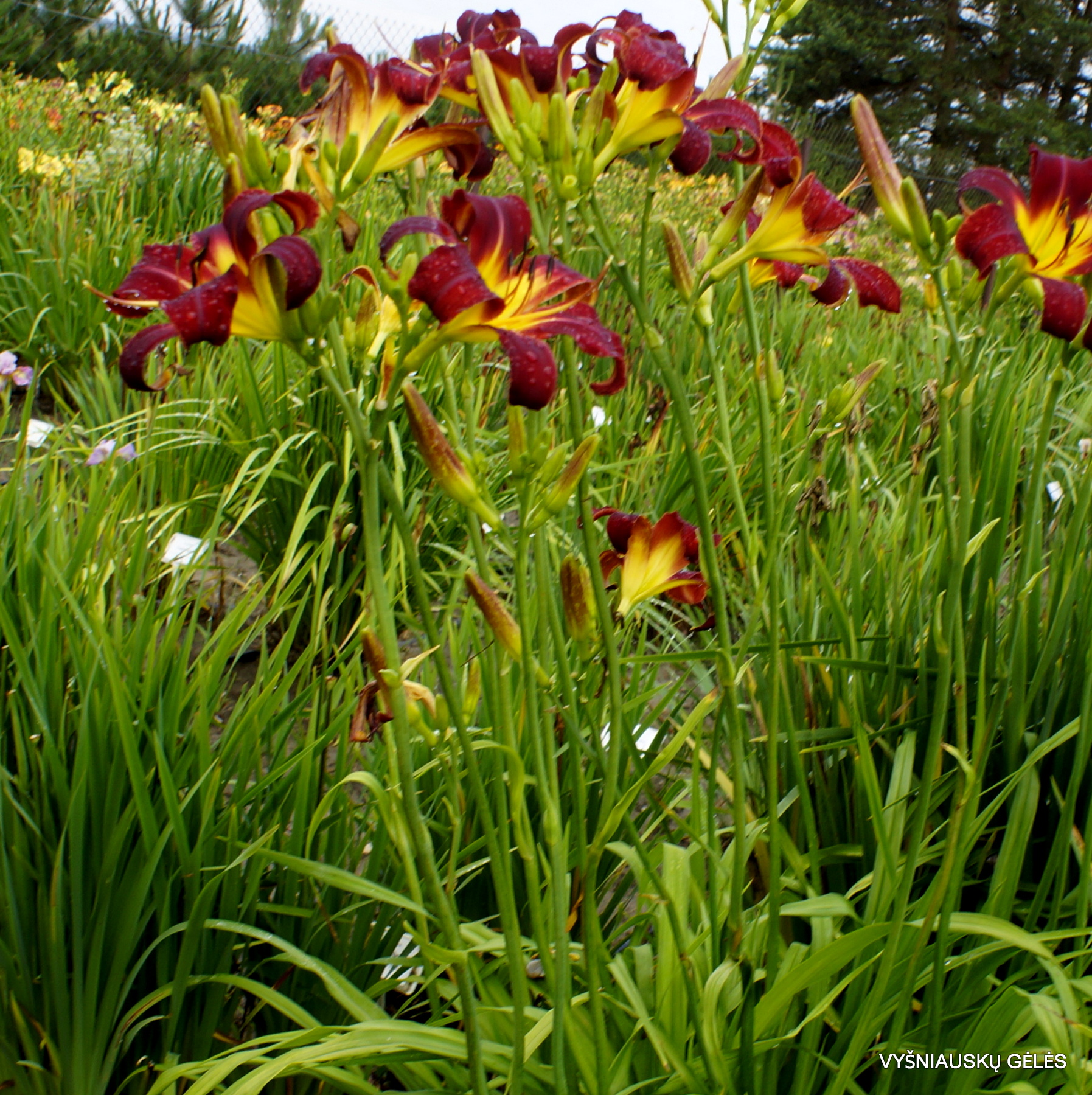 Žiedai vidutinio dydžio (14 cm skersmens) ryškiai raudoni. A – 170 cm