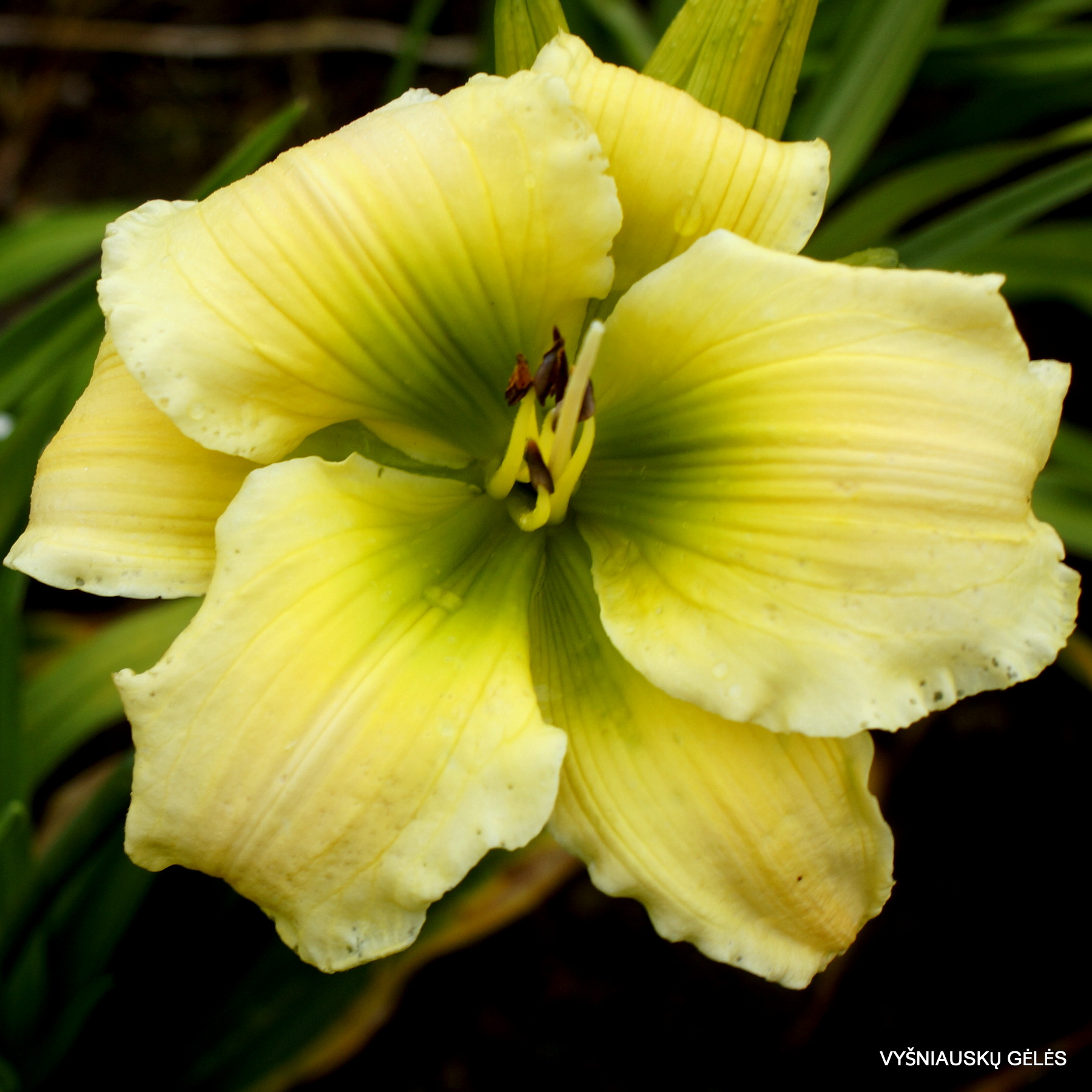 Žiedai vidutinio dydžio (15 cm skersmens) gelsvi su žaliu centru. A – 75 cm