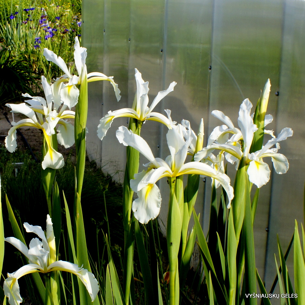 Iš Turkijos kilusi spuria vilkdalgių rūšis baltais su nedidele geltona dėme žiedais. Pražysta birželio antroje pusėje. A – 115 cm