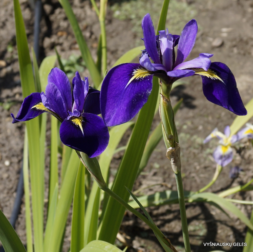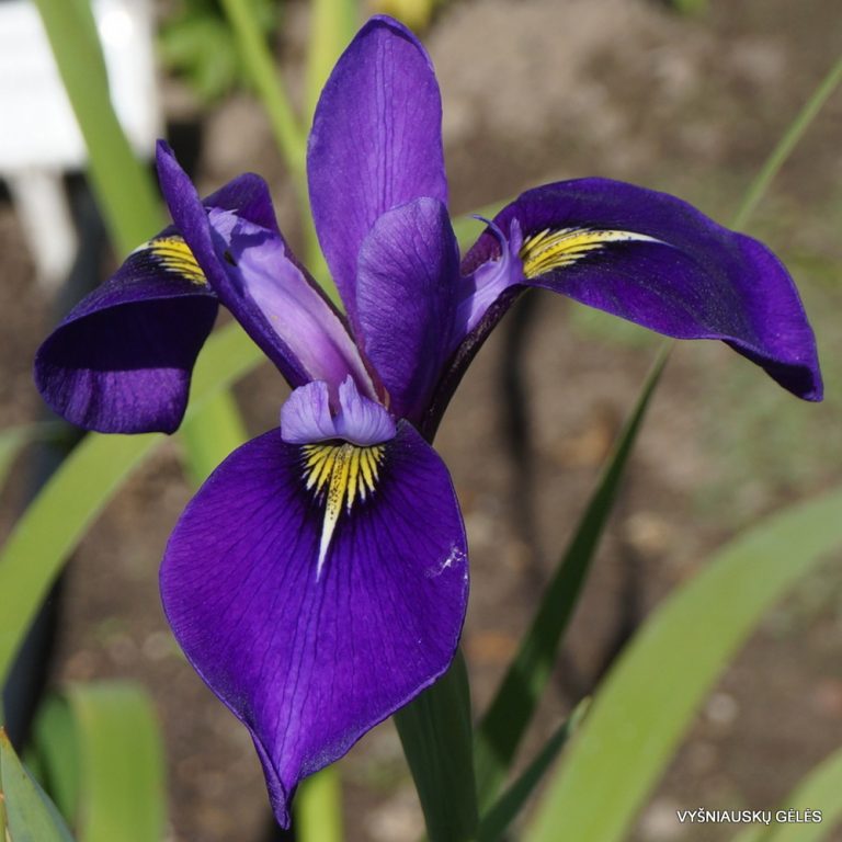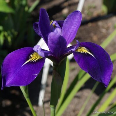 Žiedai tamsiai purpuriniai su nedidele geltona dėme. A – 110 cm