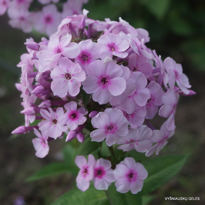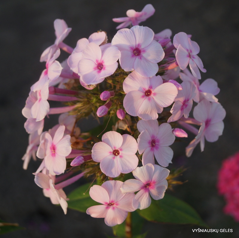 Žiedai vidutinio dydžio, šviesiai rožiniai su avietine akute.