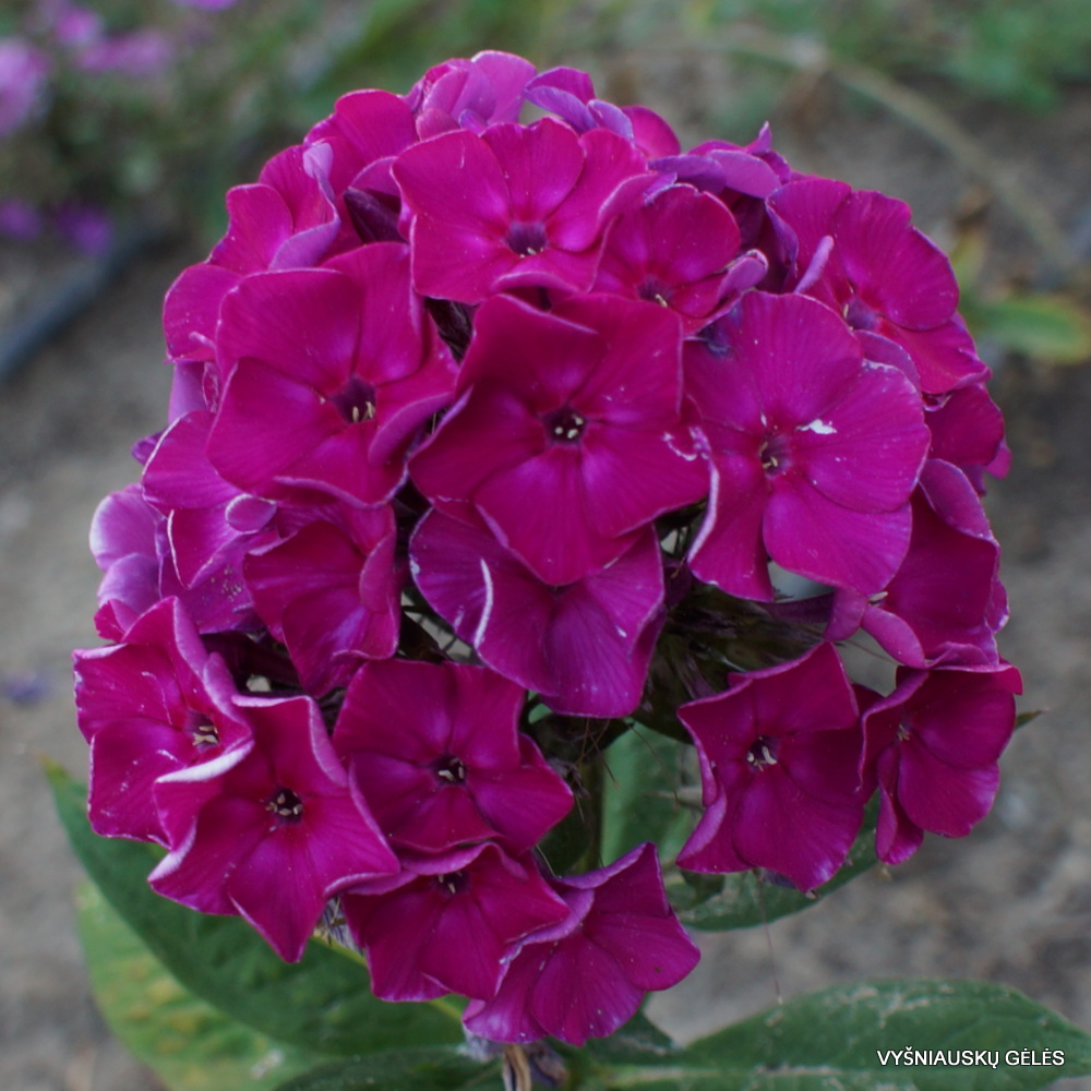 Žiedai dideli tamsiai purpuriniai tankiose kekėse. A – 70 cm