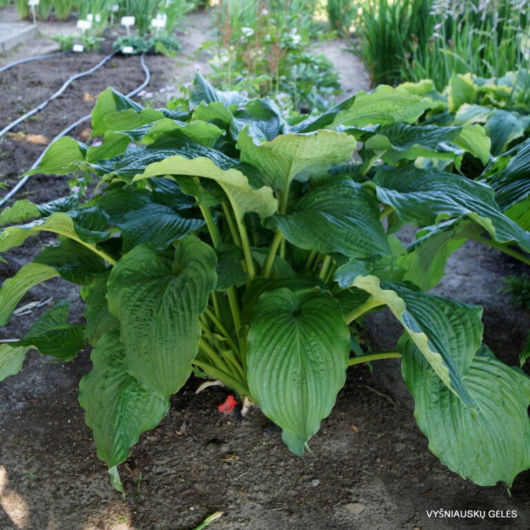 Lapai didžiuliai, tamsiai žali, stipriai gofruoti su labai ryškiomis gyslomis ir banguotais pakraščiais. Stambi ir labai graži, kai suauga. A – 70-80 cm