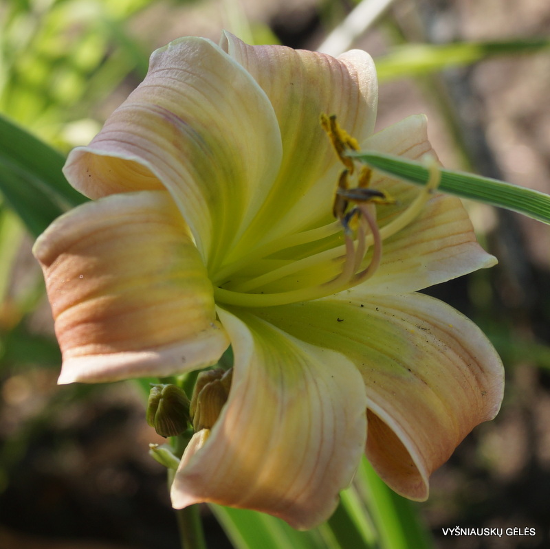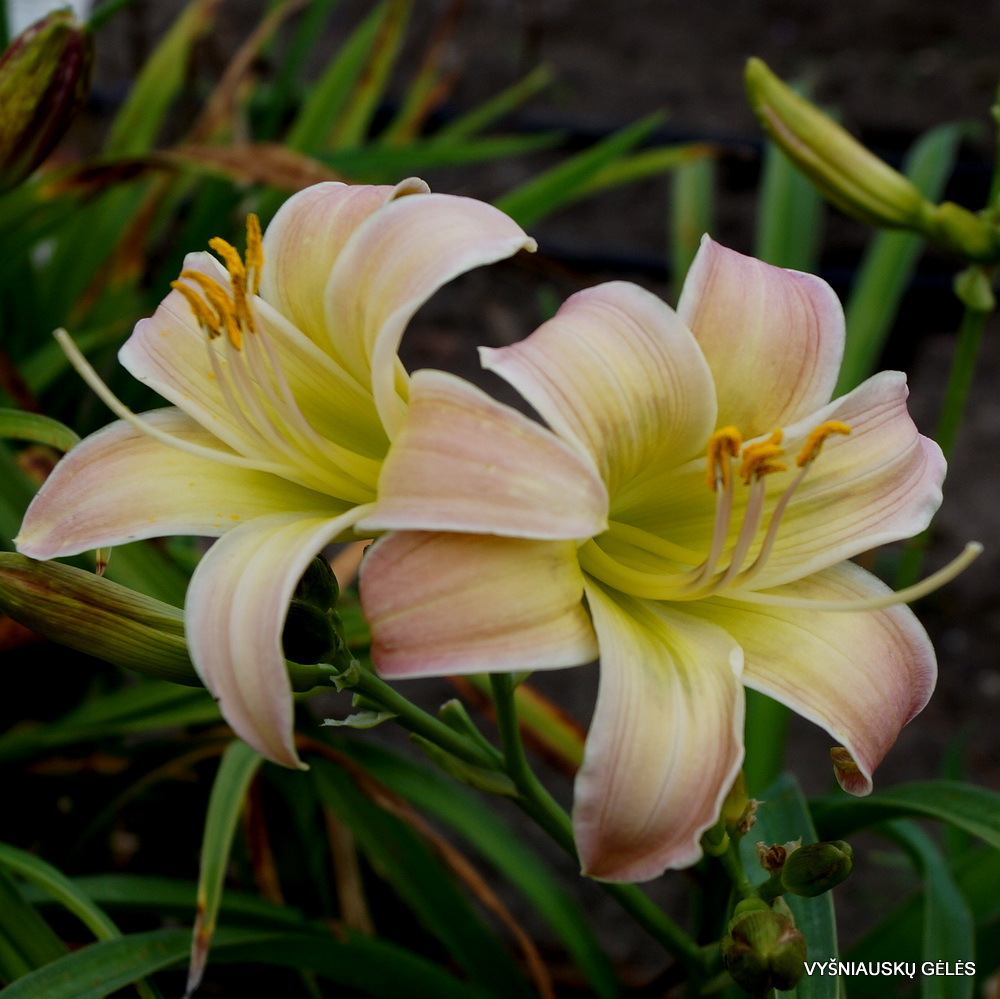 Žiedai maži (6,5 cm skersmens) kreminiai su žaliu centru. A – 60 cm