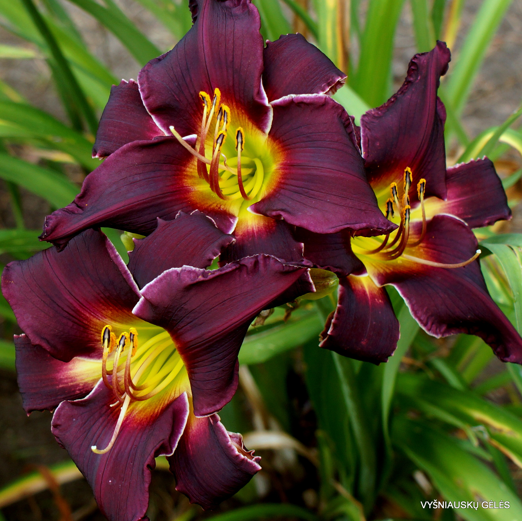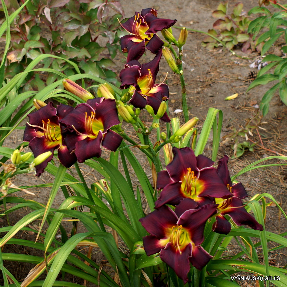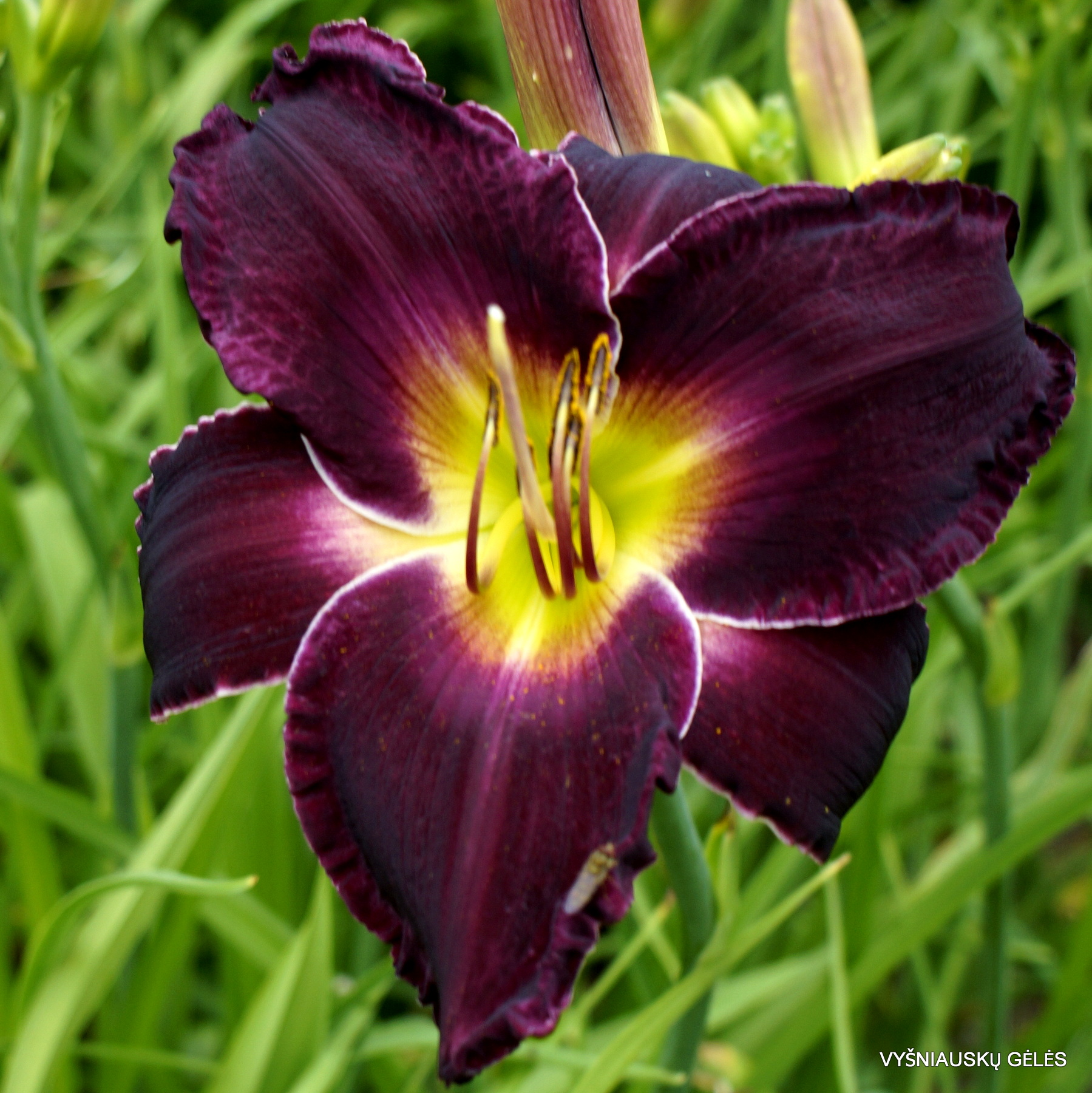 Žiedai vidutinio dydžio (15 cm skersmens) purpuriniai su žaliu centru. A – 95 cm