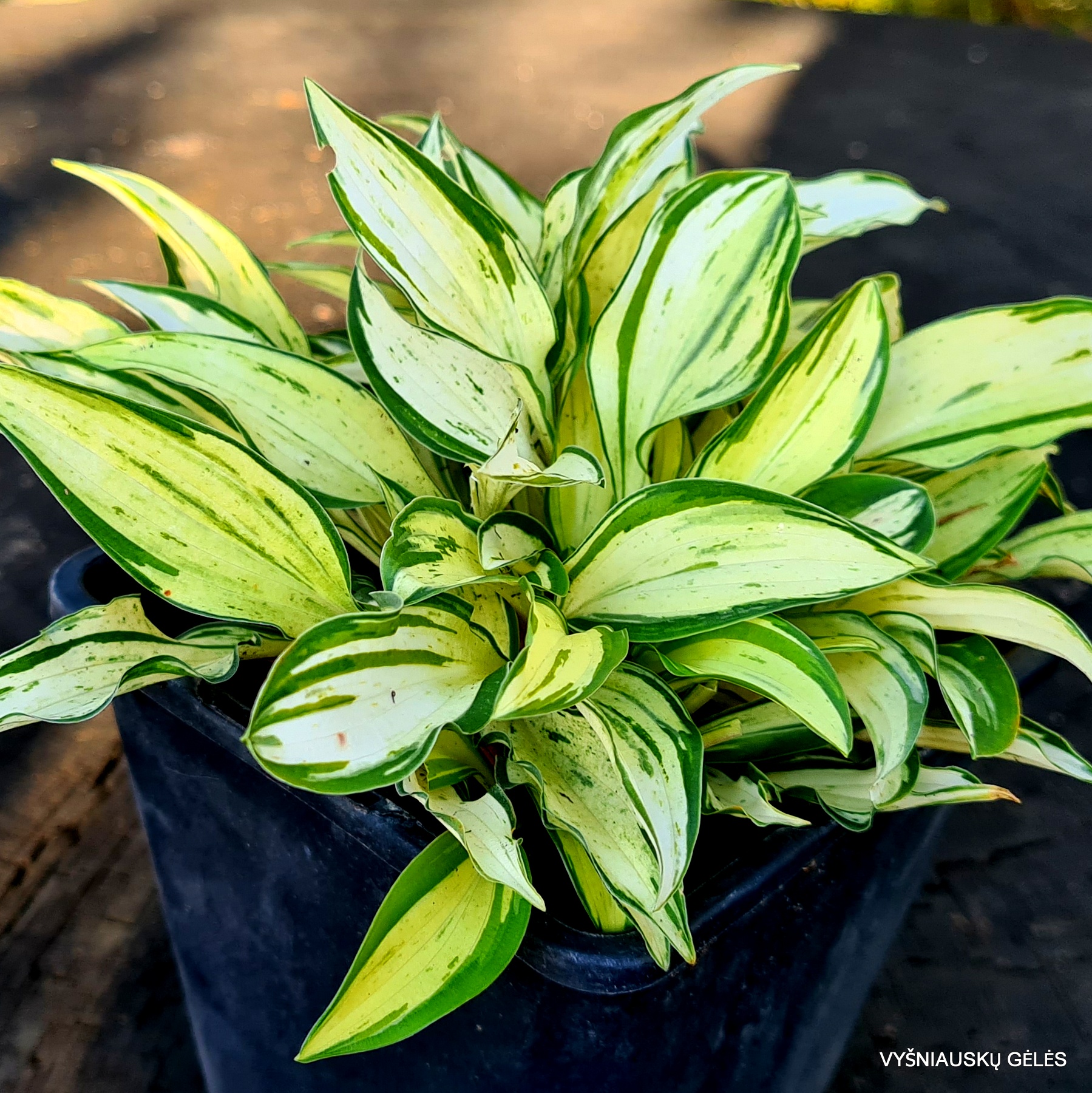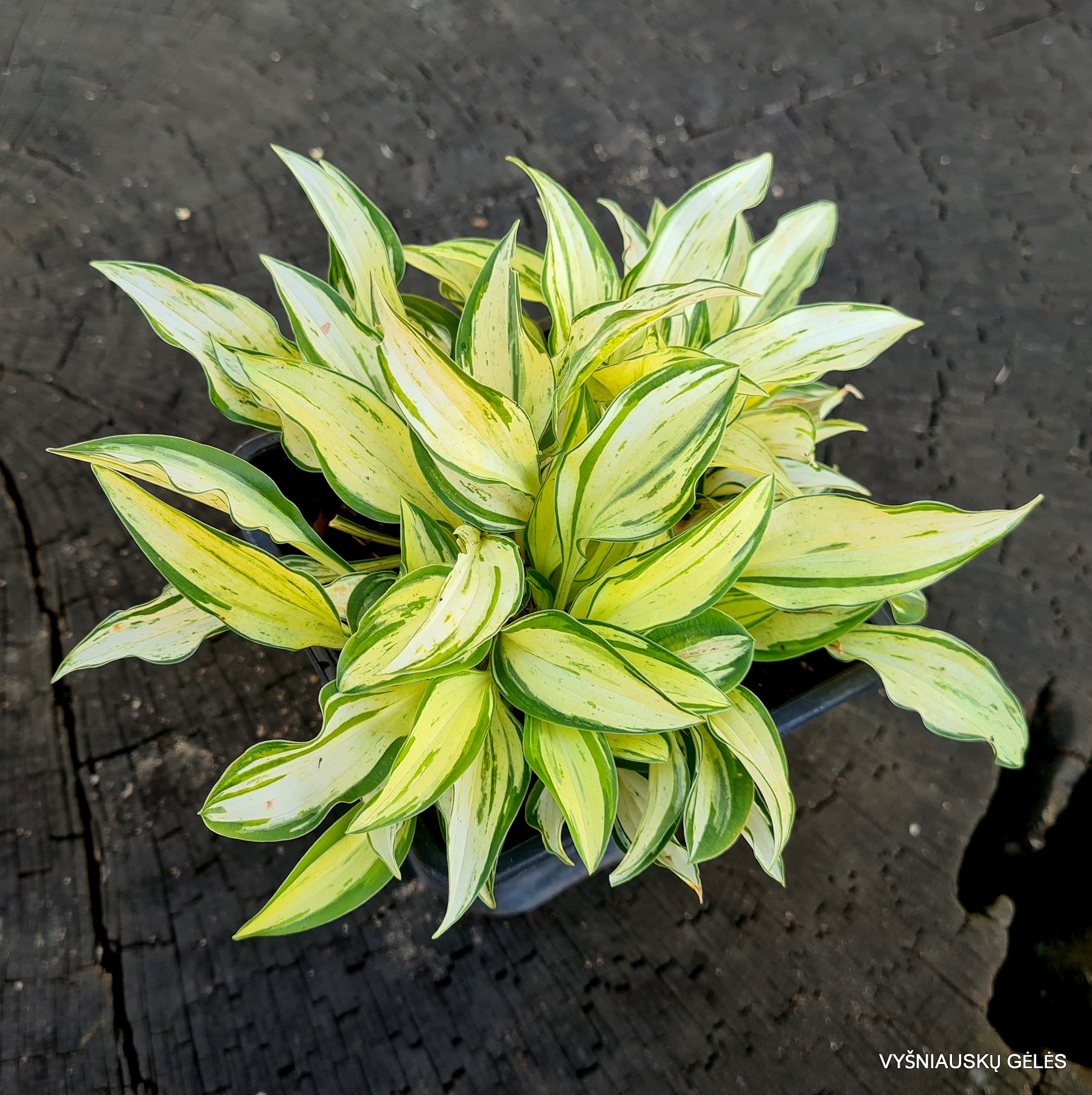 lapai balti,truputį pamarginti su tamsiai žaliu apvadu. Miniatiūrinė. A – 10 -12 cm