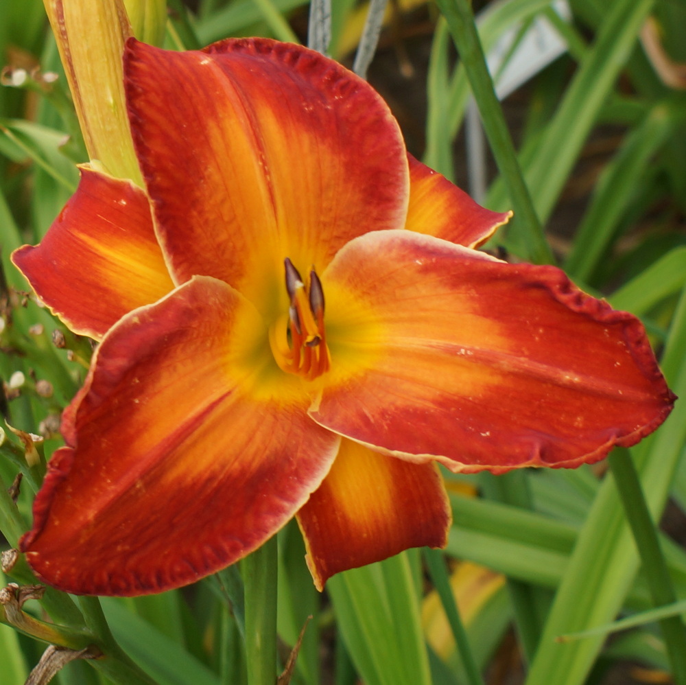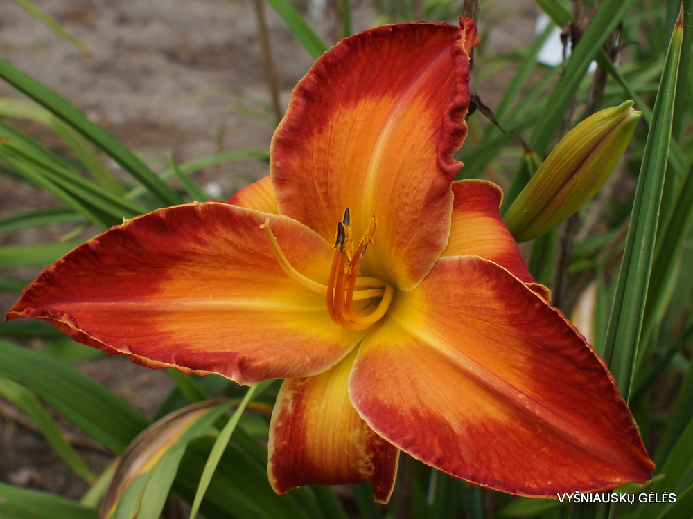 Žiedai nemaži (16 cm skersmens) oranžiškai raudoni su šviesia dėme. A – 75 cm