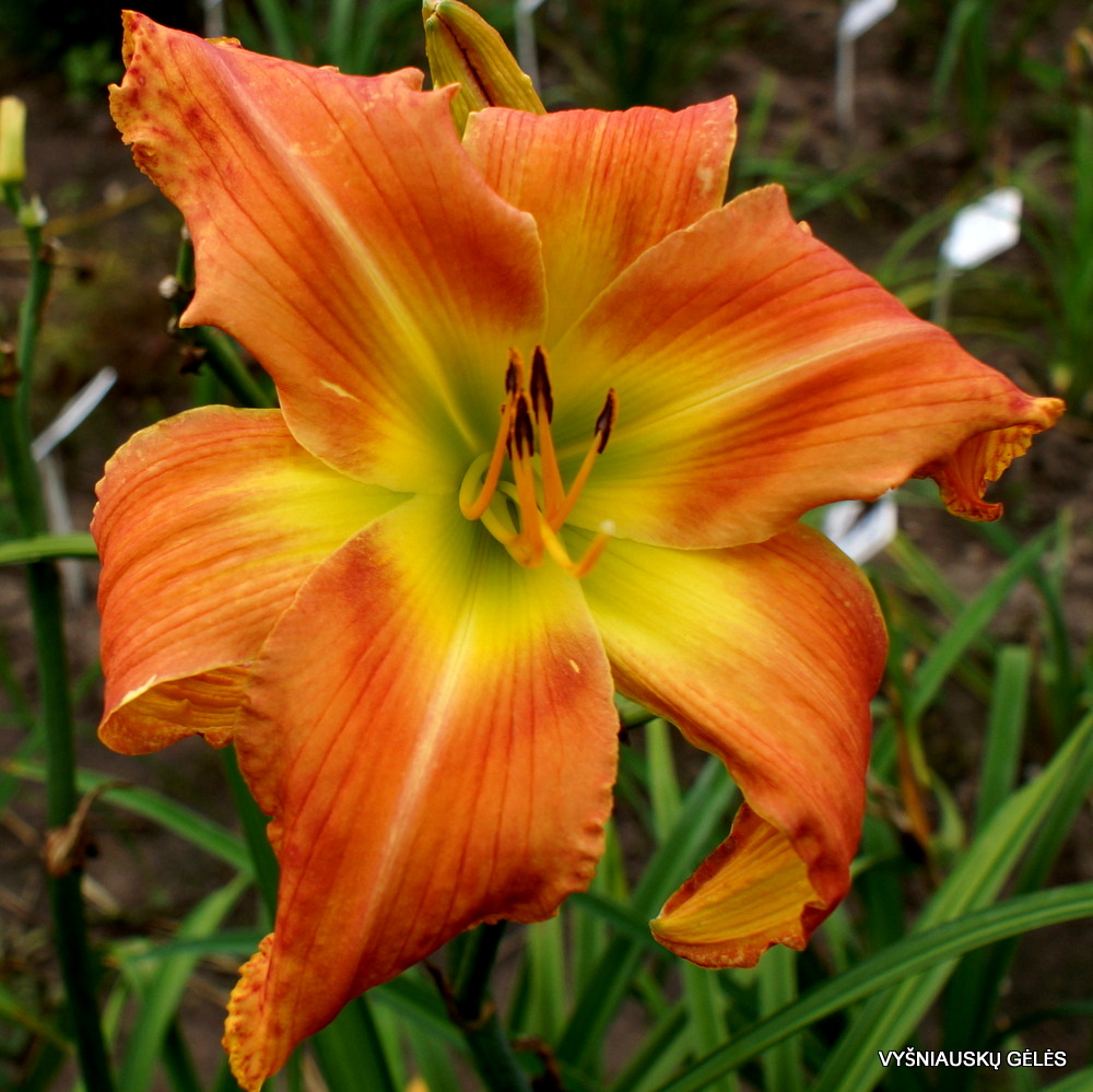 Žiedai labai dideli (23 cm) abrikosiniai su žalsvu centru. A – 110 cm