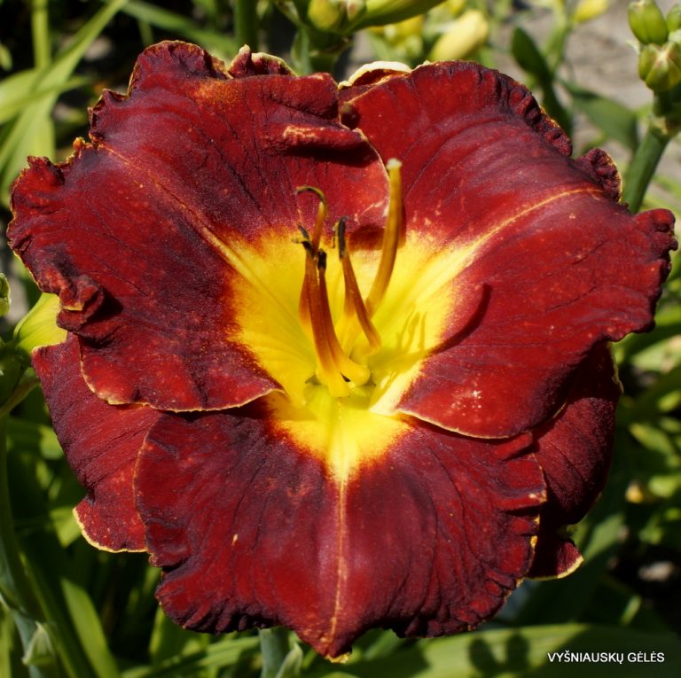 Žiedai vidutinio dydžio (15 cm skersmens) ryškiai raudoni. A – 85 cm