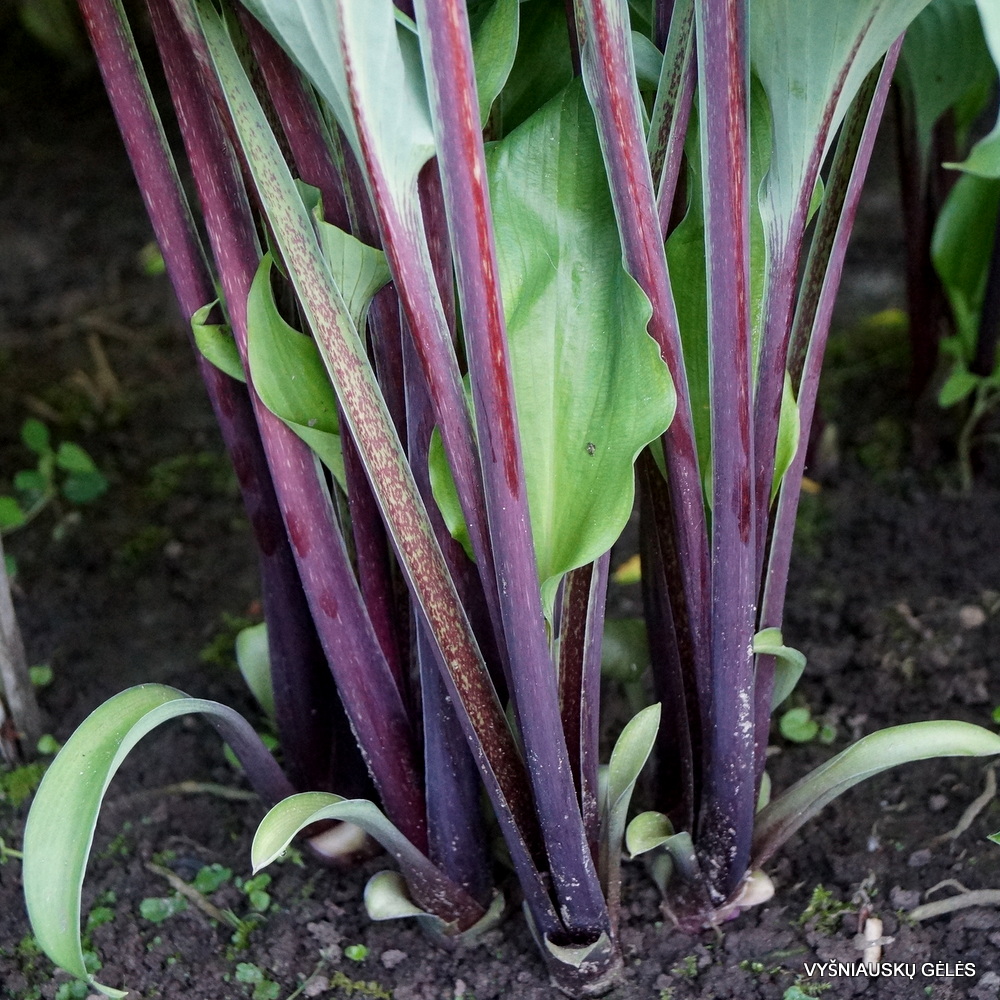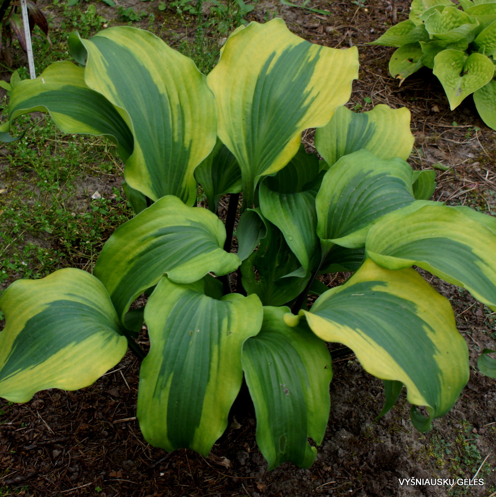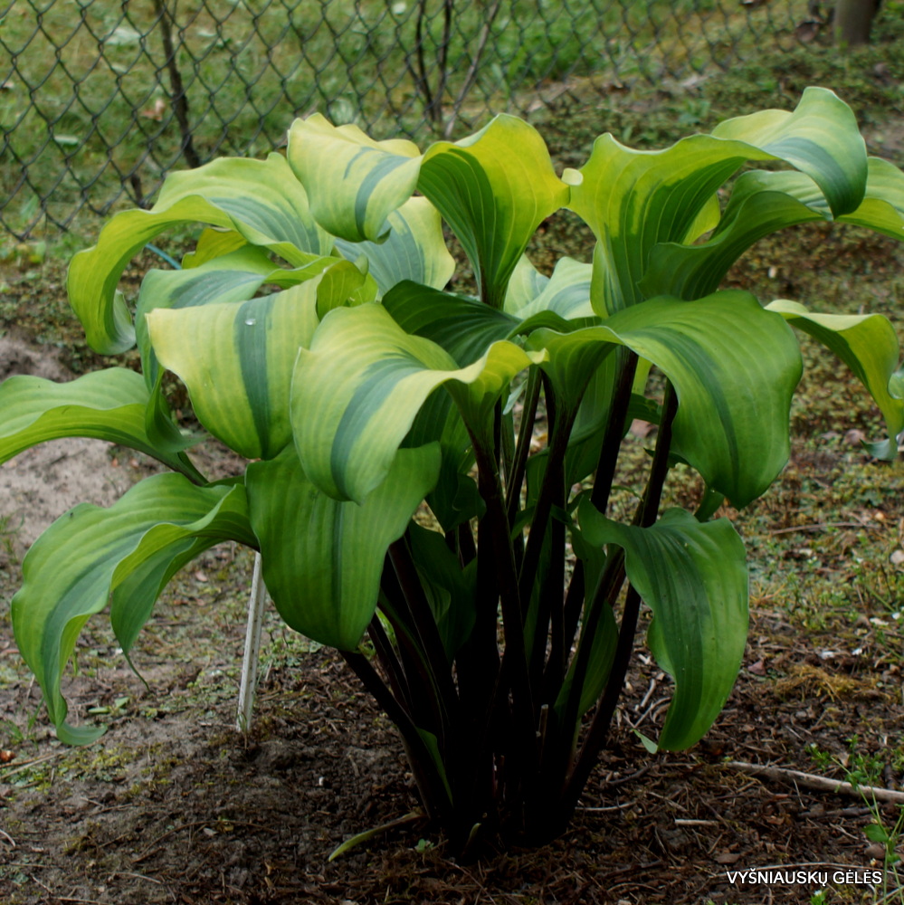 Dar viena labai išskirtinė ir viena iš gražiausių melsvių. Lapai išgaubti, žali su plačiu geltonu pakraščiu. Stiebai raudoni. Galima auginti saulėje. A – 40 – 45 cm