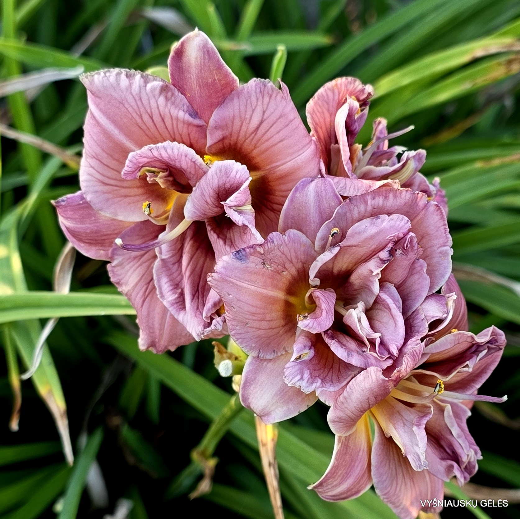 Žiedai smulkūs (7 cm skersmens). pilnaviduriai, alyviniai, su tamsesniu centru. Žemaūgė viendienė. A – 40 cm
