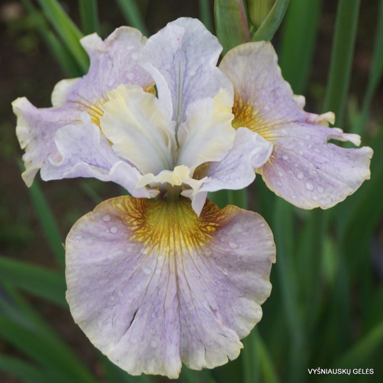 Žiedai dideli, alyviniai su geltona dėme. A – 70 cm
