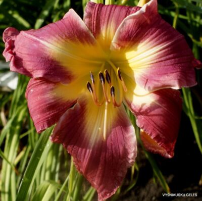 Žiedai labai dideli (20,5 cm skersmens), korališkai rožiniai su ryškesne rožine dėme. A – 80 cm
